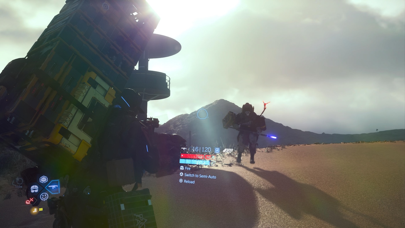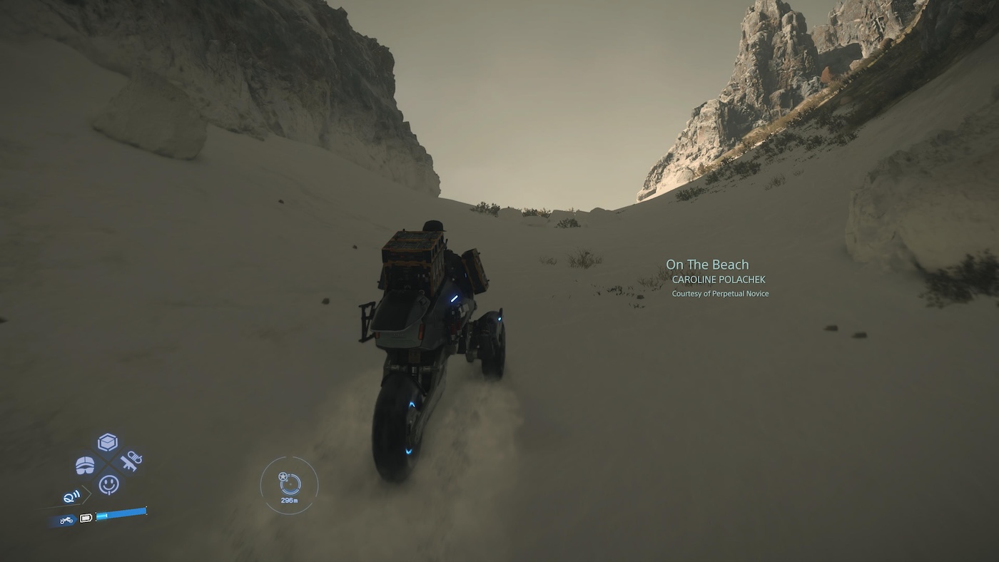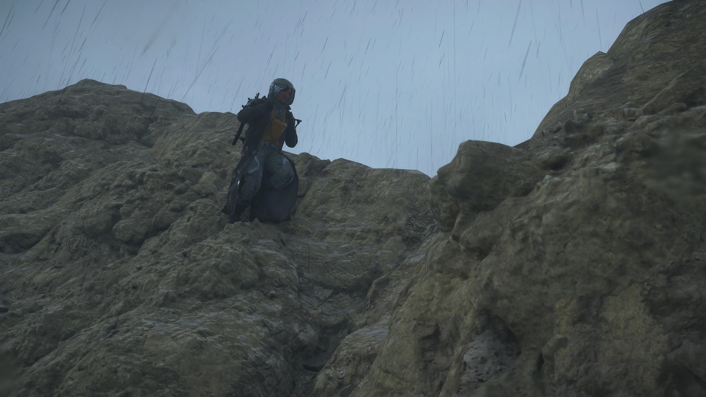 Eksploracja bywa satysfakcjonująca — nie tylko przez efektowne panoramy, ale też dzięki znajdowanym skrótom, surowcom i ukrytym detalom, które Kojima lubi wrzucać jako puszczenie oka do graczy. Można tu testować nowe pojazdy, jak na przykład amfibijny skuter, albo po prostu zboczyć z trasy, żeby spróbować przejścia przez trudniejszy teren. Zmienna pogoda nadal ma znaczenie — deszcze wpływają na stan ekwipunku i widoczność, a planowanie trasy to wciąż jeden z najważniejszych elementów rozgrywki. Jak na grę o chodzeniu przystało — tereny, po których chodzimy, są zaawansowane i dopracowane.
