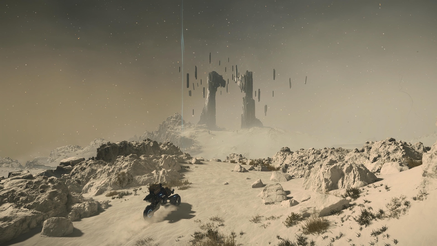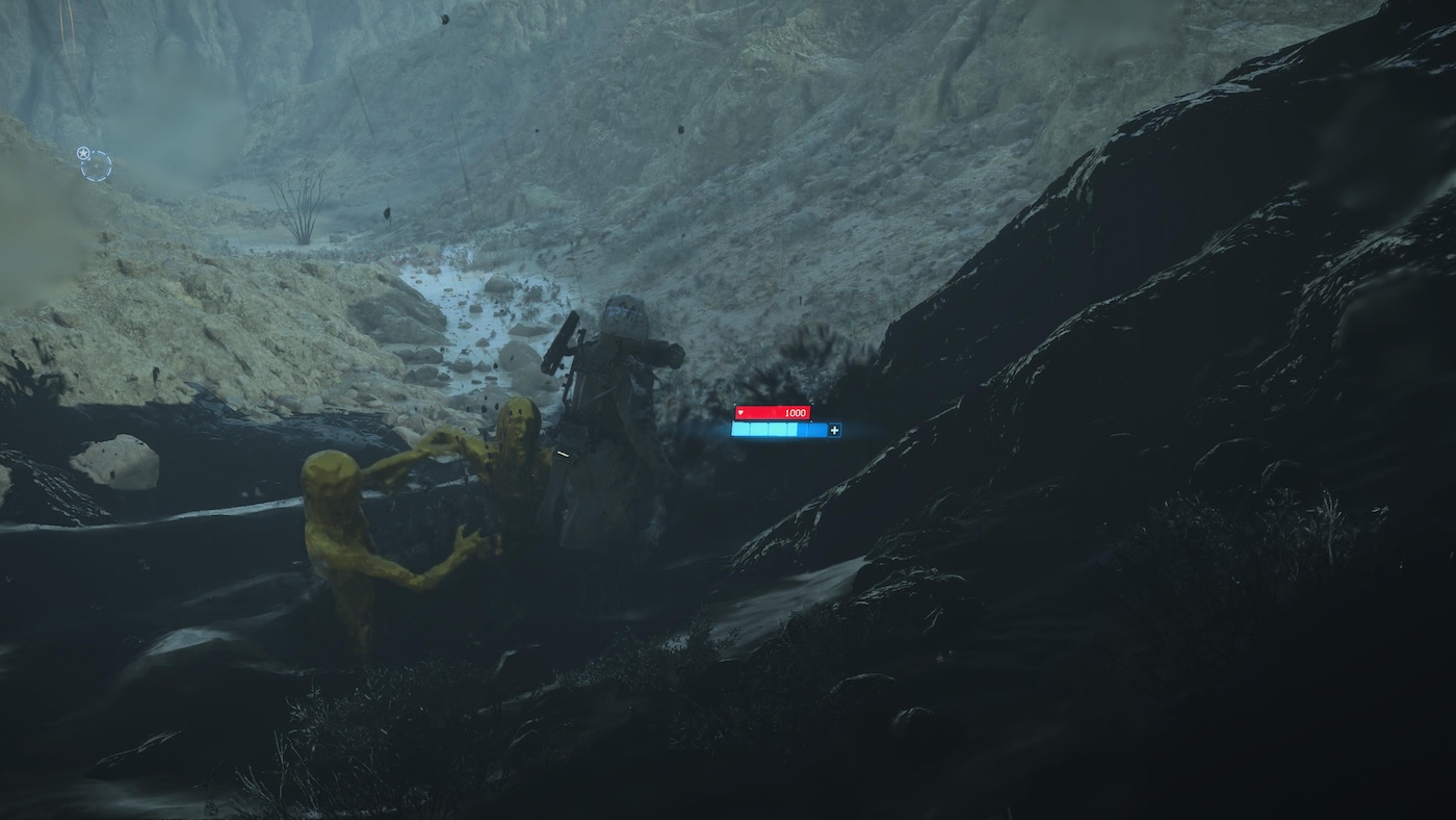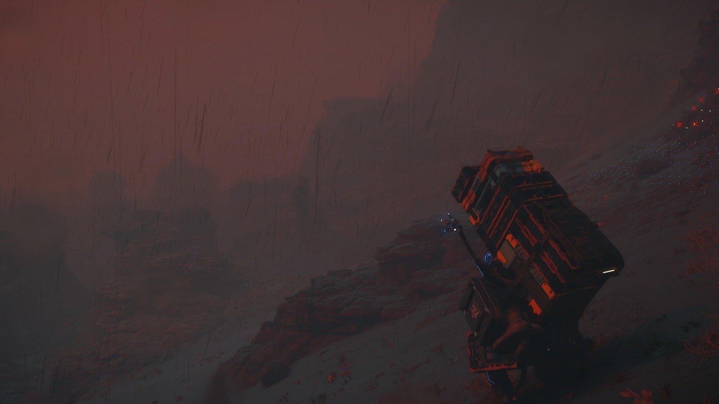 Eksploracja bywa satysfakcjonująca — nie tylko przez efektowne panoramy, ale też dzięki znajdowanym skrótom, surowcom i ukrytym detalom, które Kojima lubi wrzucać jako puszczenie oka do graczy. Można tu testować nowe pojazdy, jak na przykład amfibijny skuter, albo po prostu zboczyć z trasy, żeby spróbować przejścia przez trudniejszy teren. Zmienna pogoda nadal ma znaczenie — deszcze wpływają na stan ekwipunku i widoczność, a planowanie trasy to wciąż jeden z najważniejszych elementów rozgrywki. Jak na grę o chodzeniu przystało — tereny, po których chodzimy, są zaawansowane i dopracowane.