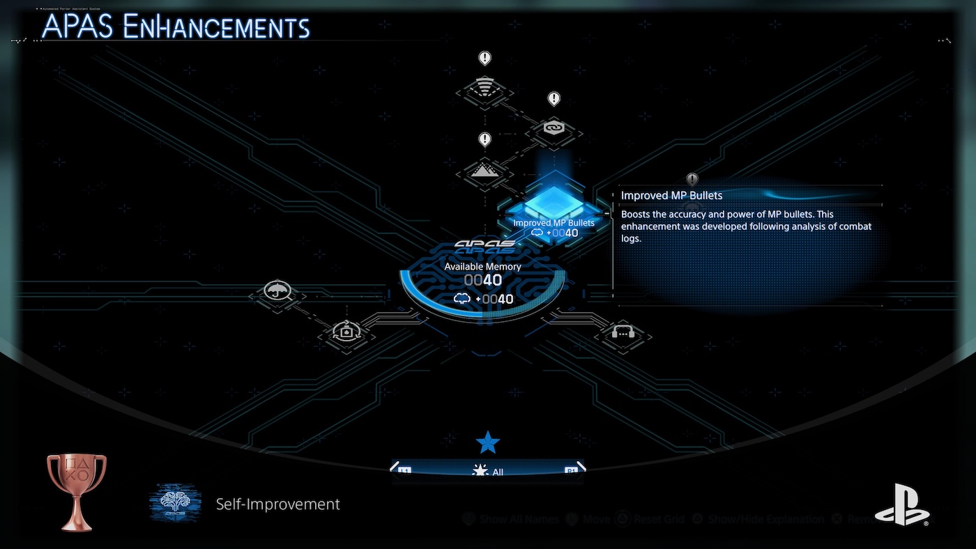 Mechanika rozwijania postaci w Death Stranding 2: On the Beach wprowadza także nowy system punktów zwany Automated Porter Assistant System (APAS) Enhancements, który pozwala na personalizację umiejętności Sama Bridgesa w trzech kategoriach: walce, skradaniu i usługach transportowych. Zdobywamy punkty pamięci poprzez wykonywanie misji, a ich liczba zależy od oceny po dostarczeniu paczek. Punkty te można wydawać na odblokowanie dodatkowych umiejętności, jak na przykład ciche poruszanie się, auto-celowanie w walce, ładowanie baterii podczas deszczu czy ostrzeżenia przed atakami z zaskoczenia. Każda umiejętność wymaga określonej liczby punktów, a ograniczona pula pamięci zmusza do strategicznego wyboru aktywnych zdolności — możliwe jest jednak swobodne przełączanie i zwracanie punktów bez kosztów, co zachęca do eksperymentowania z różnymi stylami gry. Dodatkowo, statystyki Sama, jak wytrzymałość czy nośność, rozwijają się pasywnie w oparciu o wykonywane działania.