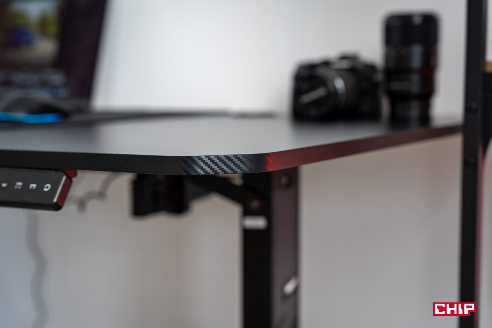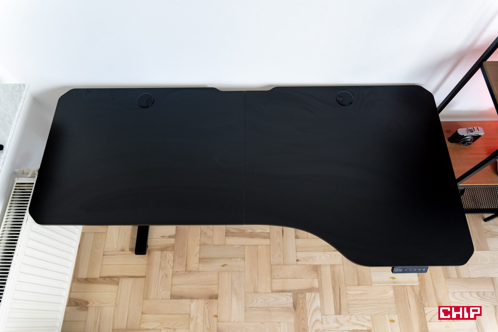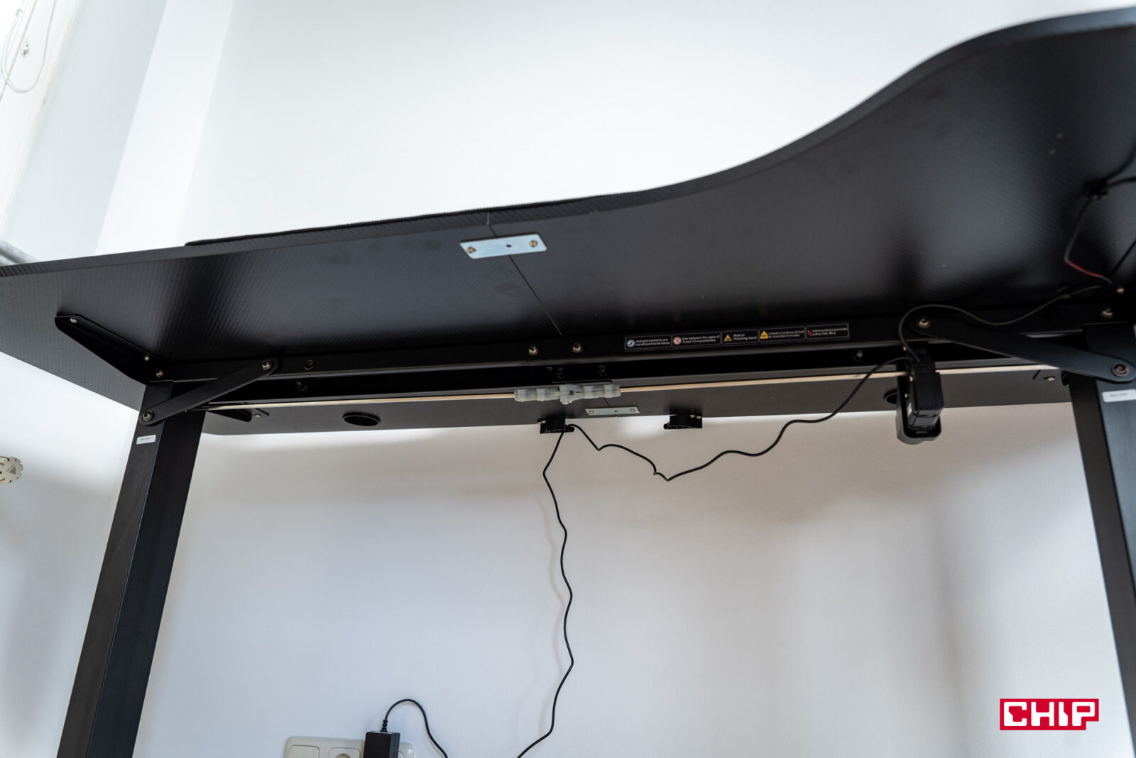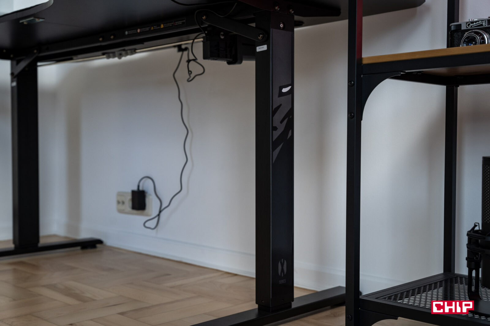Warto pamiętać o tym, że nie ma tu żadnego zabezpieczenia w sytuacji, kiedy blat napotka przeszkodę podczas zmiany wysokości. Prawdopodobnie będzie przeć do przodu do uszkodzenia mechanizmu, więc warto o tym pamiętać, jeśli obok biurka mamy przykładowo jakiś parapet, pod który wsuwamy biurko.