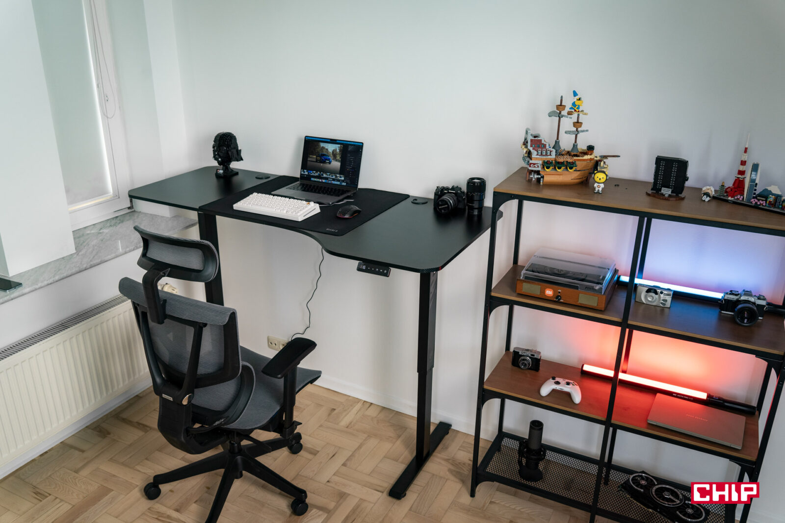 W testowanym wariancie biurko oferuje regulację wysokości w zakresie od 72 do 117 cm. Choć mechanizm nie jest przesadnie wyszukany, spełnia swoje zadanie. Nie jest głośny, producent mówi o niecałych 50 db. W praktyce, o ile nie macie papierowych ścian, zmiana wysokości w nocy nie powinna budzić domowników.