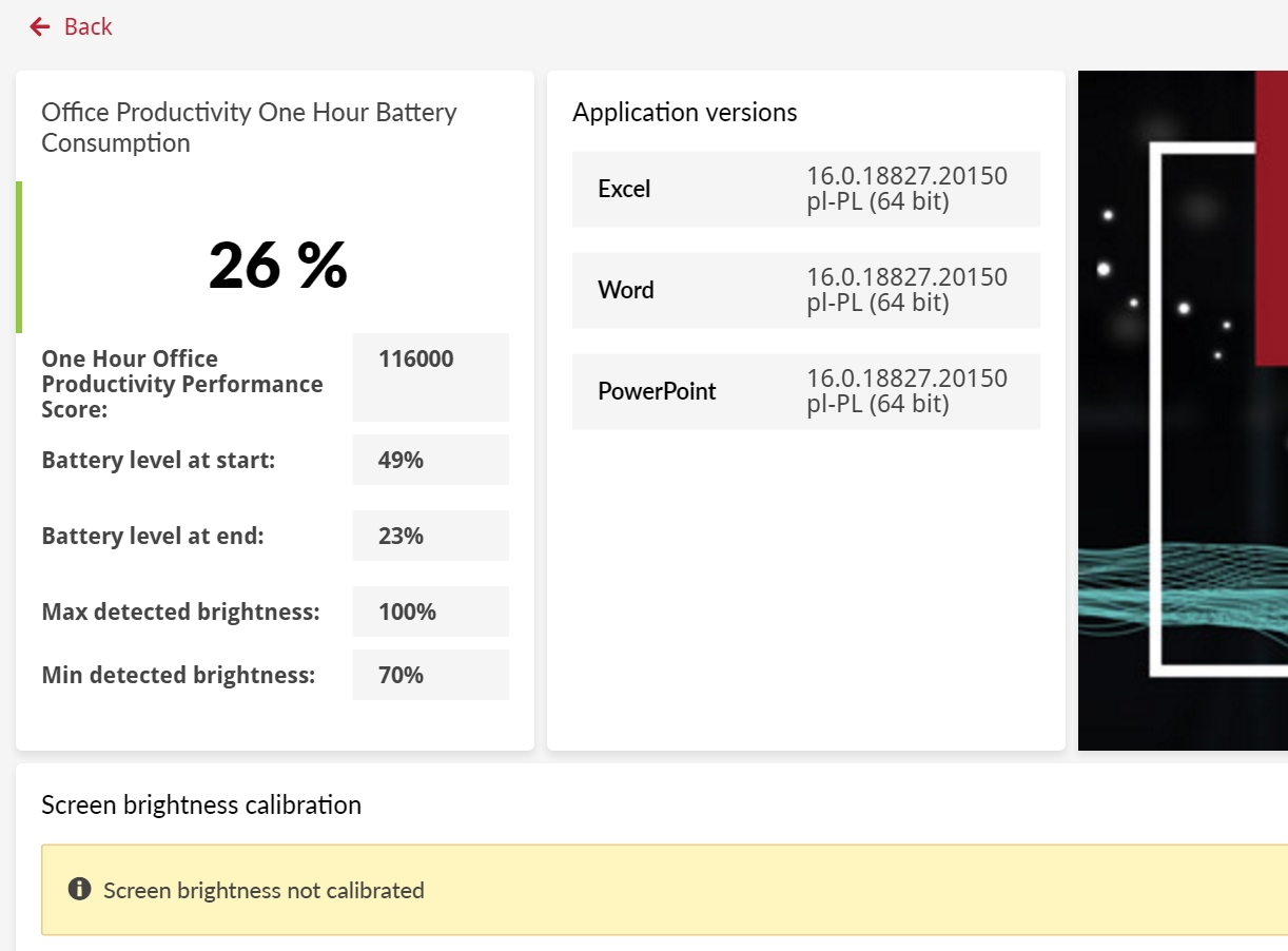 Nie jest to zły wynik. Ba, jest po prostu dobry, ale jak na ultrabooka, który został stworzony do podbijania dnia poza miejscem zamieszkania, przydałoby się, żeby wytrzymywał nieco dłużej zwłaszcza przy pracy biurowej.