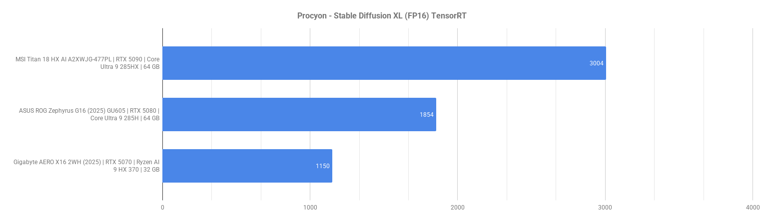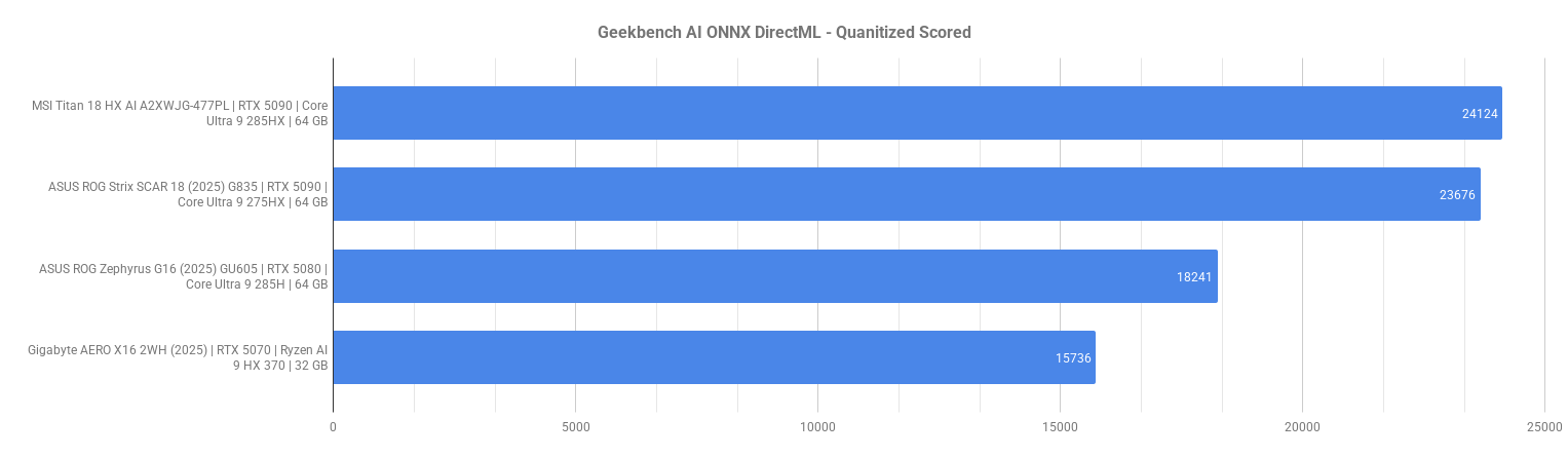 Na sam początek rzućmy okiem na wyniki w benchmarkach. Wynika z nich, że GIGABYTE AERO X16 2WH (2025) lokuje się na końcu lub tuż przed końcem tabeli niemal w każdym z testów. W benchmarkach CPU, takich jak Cinebench R23 czy 3DMark CPU Profile, Ryzen AI 9 HX 370 wypada zauważalnie słabiej od konkurencyjnych jednostek Intel Core Ultra 9, zwłaszcza w zadaniach wielowątkowych. Różnice te są jeszcze wyraźniejsze w testach Si, czyli Procyon oraz Geekbench AI, gdzie model od Gigabyte nie tylko odstaje wydajnością, ale często też pracuje z dużo niższą efektywnością w zależności od użytego backendu (TensorRT, OpenVINO, ONNX). Również karta graficzna nie jest w stanie konkurować z RTX 5080 czy 5090 w zadaniach takich jak Stable Diffusion, 3DMark Speed Way czy Geekbench GPU OpenCL, a różnice sięgają nawet kilkudziesięciu procent. Czy jednak nas to dziwi? Niespecjalnie.