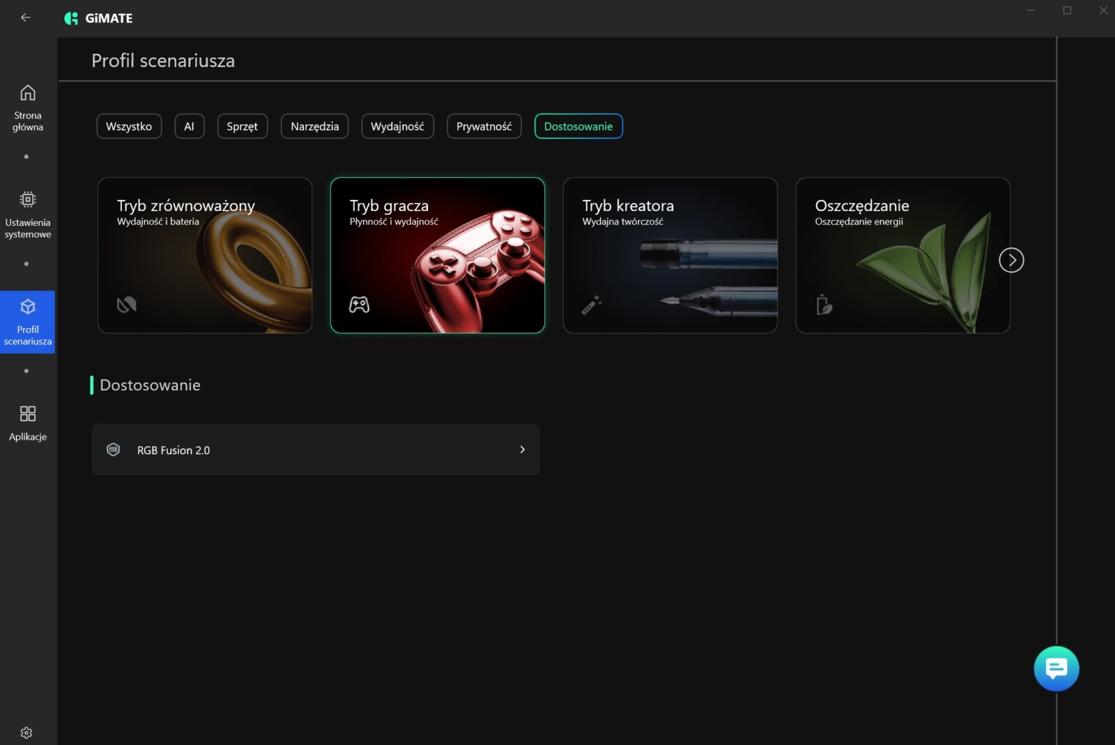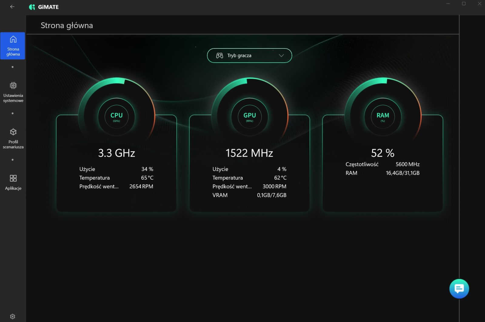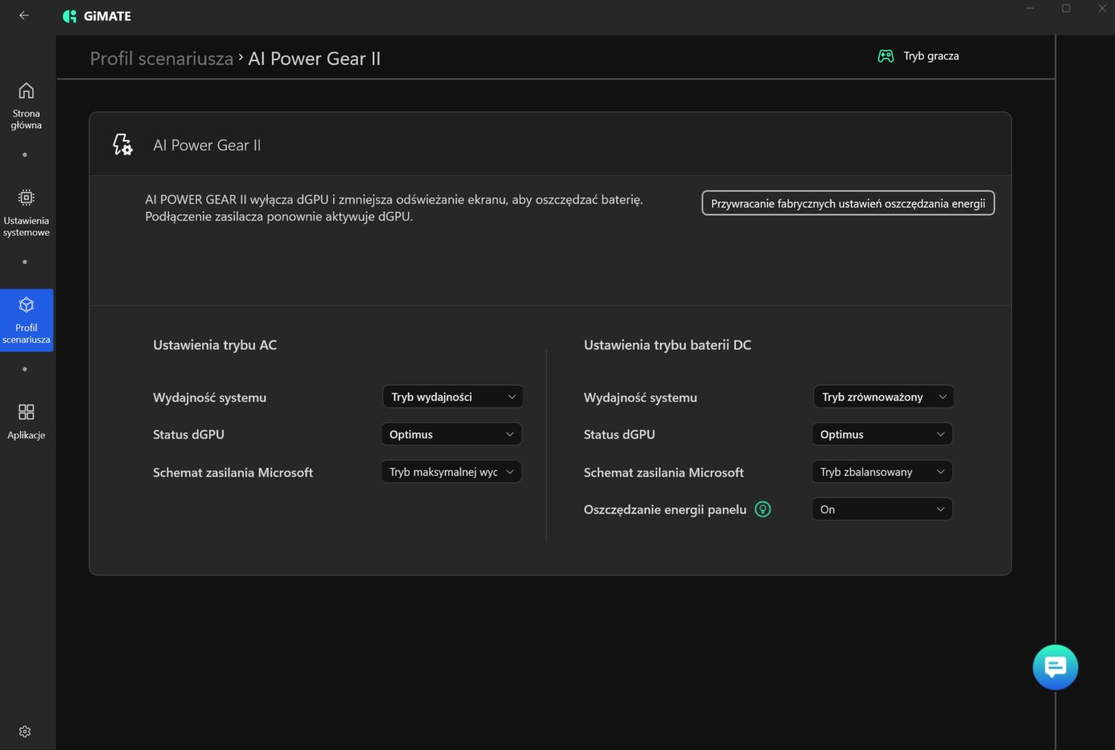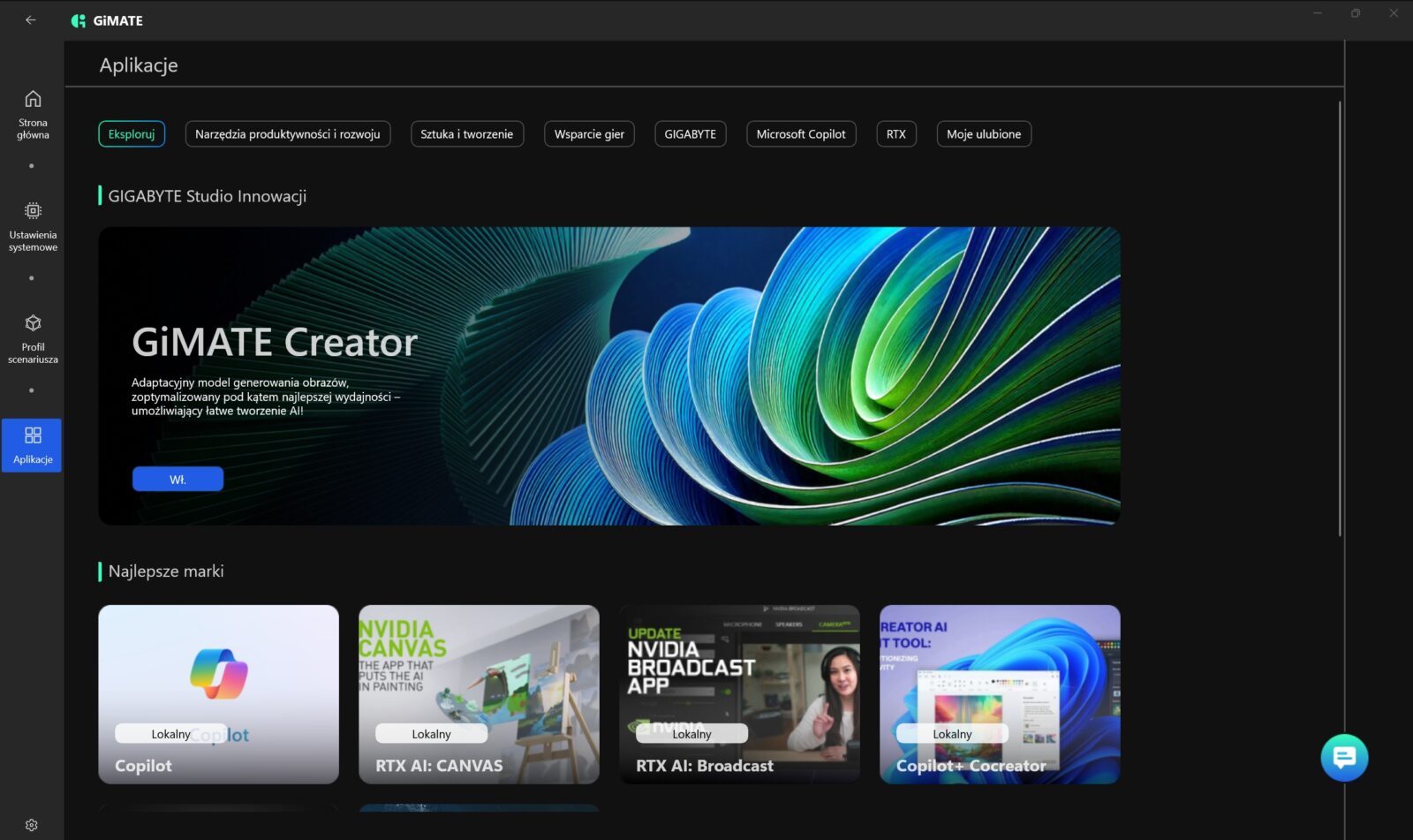 W tej akurat kwestii Gigabyte niespecjalnie mnie zachwycił, bo wbudowane oprogramowanie GiMATE nie należy do ideału. W skrócie? Widziałem lepsze aplikacje do zarządzania laptopami, a przede wszystkim prostsze i przyjemniejsze w odbiorze. Nie można jej wprawdzie odmówić funkcjonalności, ale sposób podania tego ewidentnie powinien zostać dopracowany, choć przyznam, że integracja lokalnego asystenta z opcją wydawania poleceń obniża pułap wejścia w aspekt zarządzania całym laptopem.