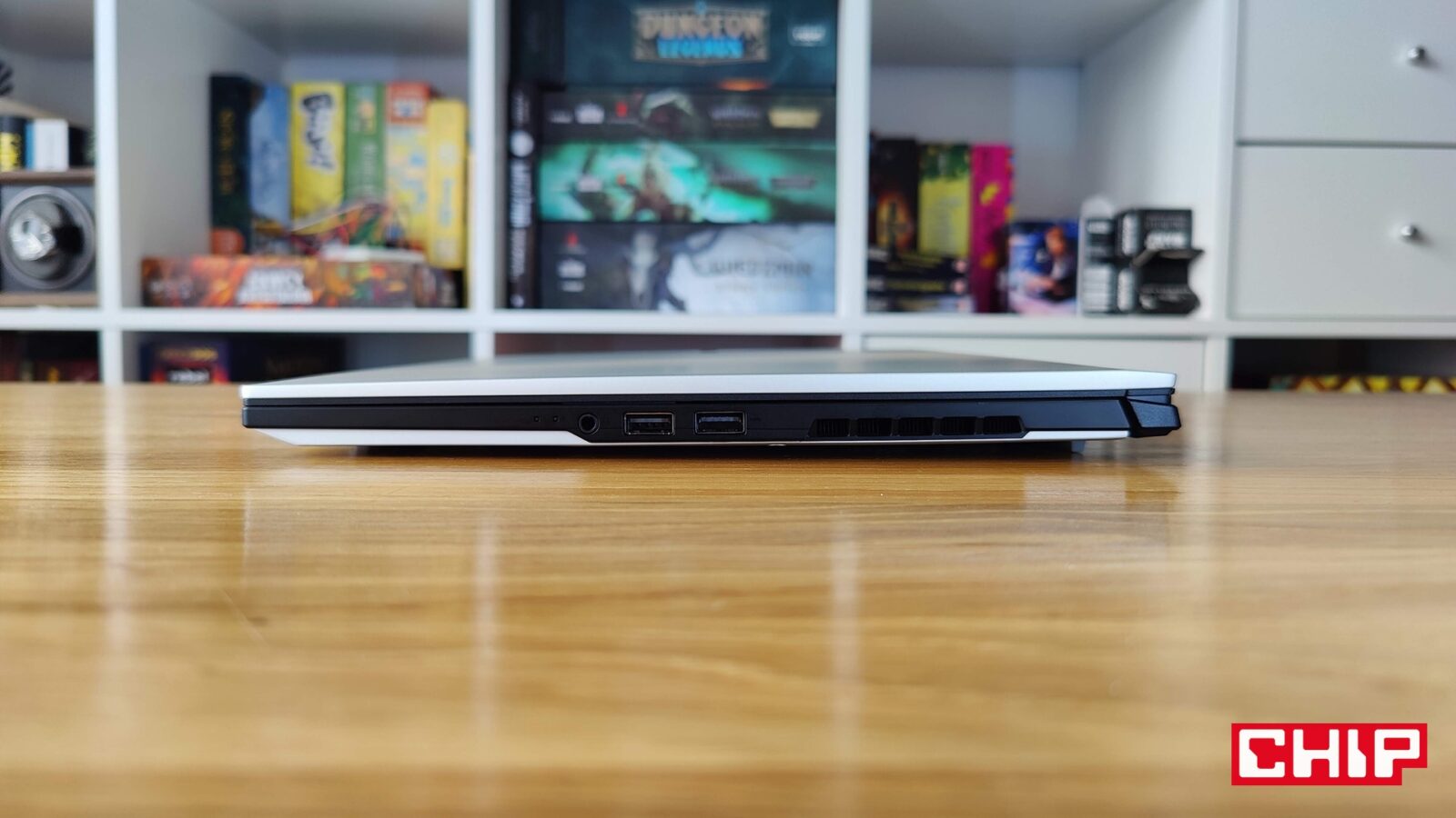 Poza zaawansowanym systemem chłodzenia firma Gigabyte zadbała o to, aby w AERO X16 2WH przemycić wprawdzie nie jakiś najbogatszy, ale bardzo funkcjonalny zestaw portów na lewej i prawej krawędzi. Co zaskakuje? Ewidentnie obecność portu RJ45 na lewym boku, któremu towarzyszy port zasilania, HDMi 2.1, USB-A 3.2 Gen 1, USB-C w formie USB4 wspierającego DisplayPort 1.4 oraz Power Delivery 3.0. Na prawej z kolei znajdziemy typowy “zestaw peryferyjny”, bo USB-A 2.0, USB-A 3.2 Gen1 i 3,5-mm Combo-Jack, a więc idealny na klawiaturę, myszkę i słuchawki. Bogatszy zestaw peryferiów będzie jednak budzić problemy i tyczy się to zwłaszcza scenariusza, w którym wykorzystujecie USB-C w roli zasilania/sygnału monitora, a regularnie wpinacie w komputer np. zewnętrzny dysk o wysokiej wydajności. Zaskakująca jest też obecność USB-A 2.0 pamiętającego czasy… no, dawne czasy.