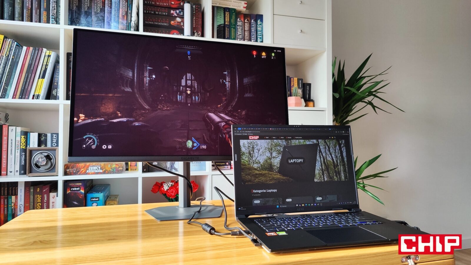 Jeśli jednak taki ekran będzie dla was zwyczajnie za mały, to w duecie z Gigabyte AERO X16 2WH idealnie wręcz sprawdza się monitor Gigabyte M027Q2, który ma już do zaoferowania matrycę OLED, na której gry i filmy wyglądają po prostu lepiej. Trudno się jednak temu dziwić, bo cena tego monitora stanowi około 18 procent ceny całego laptopa. Umówmy się jednak, że na swoim stanowisku po prostu dobrze mieć dedykowany monitor do efektywniejszej pracy, a sięgnięcie po model z wyższej półki po prostu się opłaca. Zarówno jeśli idzie o surową produktywność, jak i treści rozrywkowe.