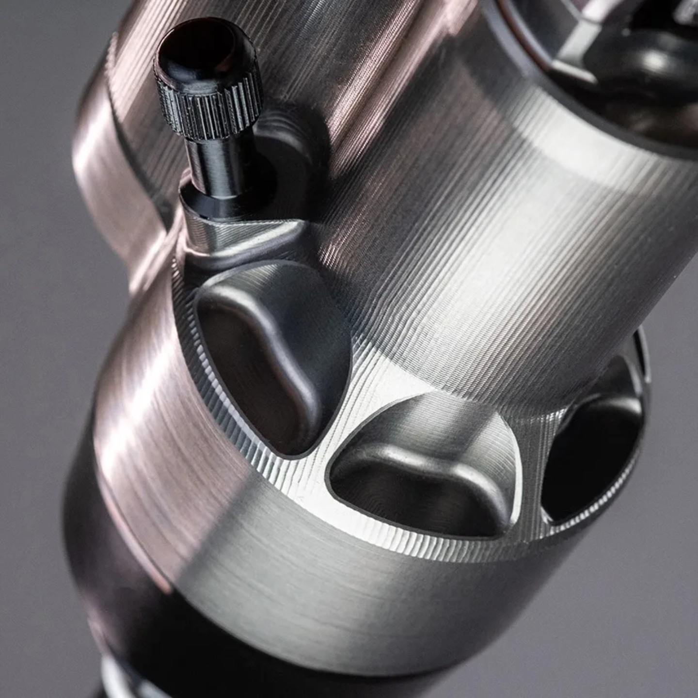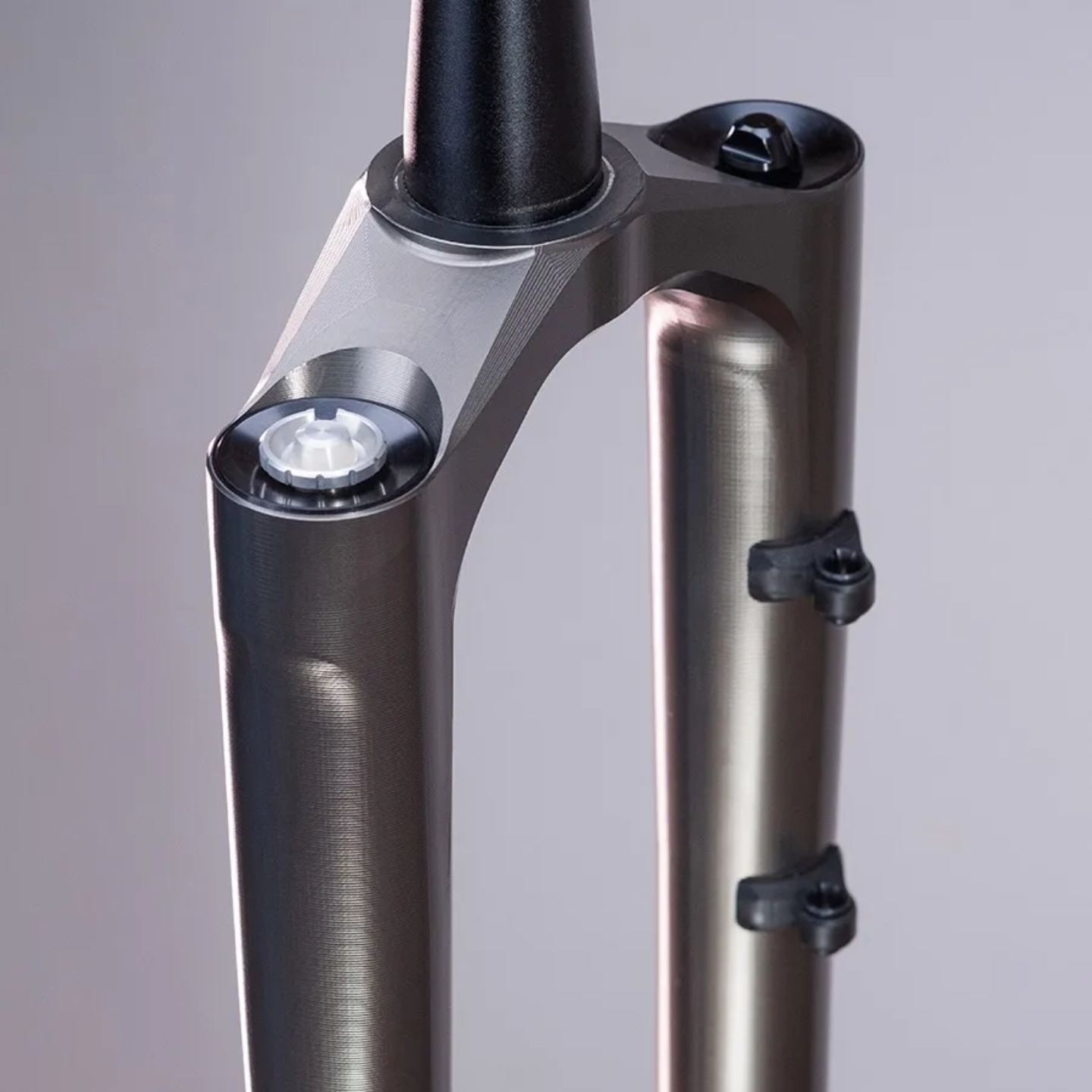 Największą innowacją widelca One Piece jest fakt, że cały górny segment widelca, a więc korona i golenie górne, został wykonany z jednego bloku aluminium 7075 metodą precyzyjnego frezowania CNC. Oznacza to brak spawów, połączeń śrubowych czy klejonych, co wyeliminowało potencjalne punkty o niskiej wytrzymałości. Taka konstrukcja nie tylko poprawia sztywność i wytrzymałość całego elementu, ale również zapewnia absolutnie unikalny wygląd. Dorzućmy do tego odwrócony charakter, który jest rzadkością w MTB, choć oferuje kilka zalet, a w tym mniejszą masę nieresorowaną oraz lepsze sparowanie za sprawą grawitacji. W praktyce oznacza to bardziej czułą pracę na małych nierównościach i lepsze prowadzenie w trudnym terenie.