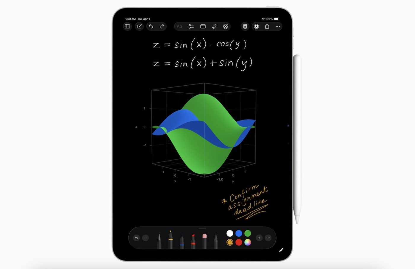 iPadOS 26 przynosi też mniejsze ulepszenia. Nowy pędzel trzcinowy w palecie narzędzi umożliwia kaligraficzne pismo w aplikacjach takich jak Notatki, Preview czy Freeform, wspierając Apple Pencil i dotyk. Kalkulator w Math Notes oferuje teraz trójwymiarowe wykresy dla równań z trzema zmiennymi. Notatki pozwalają importować i eksportować pliki w formacie markdown oraz nagrywać rozmowy telefoniczne z transkrypcją. Funkcje dostępności obejmują Accessibility Reader dla łatwiejszego czytania, Braille Access oraz możliwość tymczasowego udostępniania ustawień dostępności na innym urządzeniu.