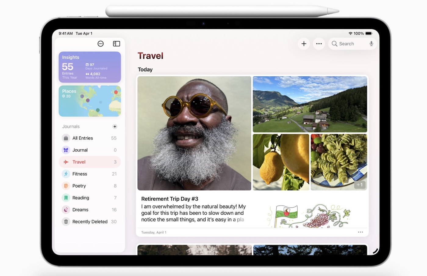 iPadOS 26 wprowadza aplikację Dziennik, która pozwala zapisywać codzienne chwile i ważne wydarzenia. Można tam dodawać rysunki i odręczne notatki za pomocą Apple Pencil, a także zdjęcia, wideo, nagrania audio, lokalizacje czy opisy nastroju. Możliwość tworzenia wielu dzienników i widoku mapy, który porządkuje wpisy według miejsc. Aplikacja Apple Games trafia nie tylko do iOS, ale także iPadOS — to nowe centrum dla graczy, z funkcją Game Overlay, która pozwala sprawdzać aktualizacje, dostosowywać ustawienia czy zapraszać znajomych bez przerywania gry. W Wiadomościach pojawiły się niestandardowe tła, możliwość tworzenia ich w Image Playground, ankiety, wskaźniki pisania w czatach grupowych oraz obsługa Apple Cash. Nowością jest aplikacja Telefon na iPadzie, z funkcjami Hold Assist (powiadomienie o dostępnym konsultancie) i Call Screening (filtrowanie nieznanych połączeń), które ułatwiają zarządzanie rozmowami.