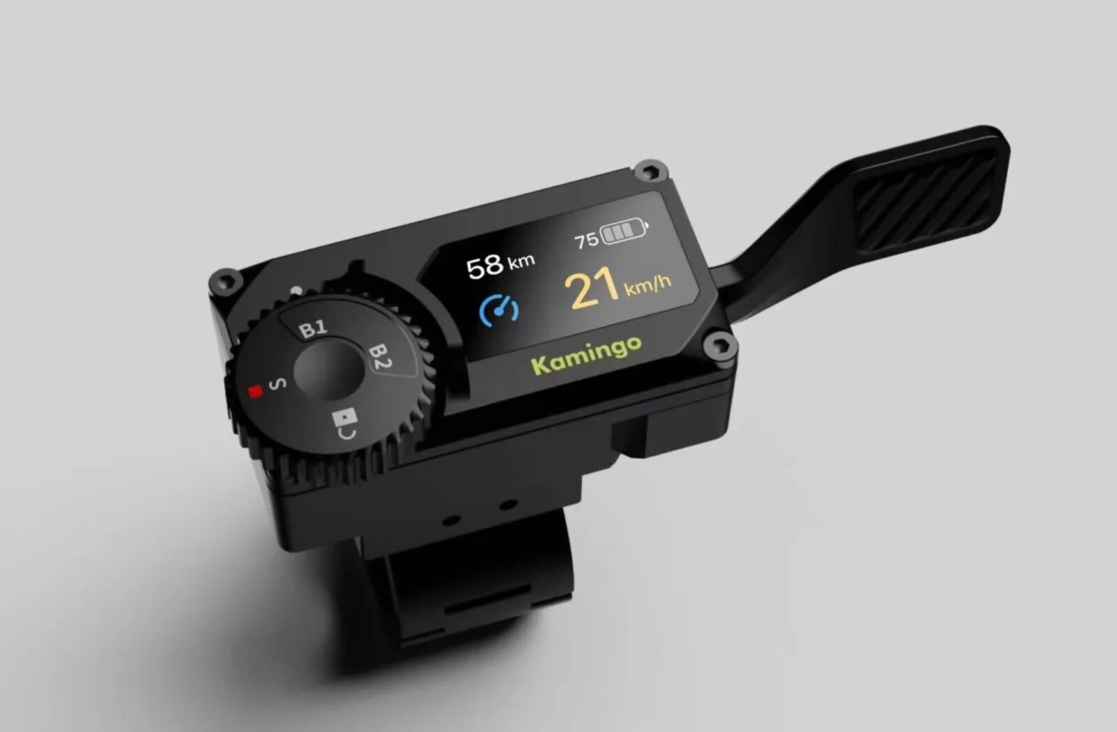 Kamingo to niewielki, modułowy system ważący zaledwie 2,3 kg, czyli mniej więcej tyle, ile waży laptop, a składa się z trzech elementów, bo silnika, akumulatora oraz sterownika. Podczas gdy około 900-gramowy silnik montujemy mniej więcej pod siodełkiem, 1,4-kg akumulator wsuwamy w koszyk na bidon, a kontroler ląduje w bezpiecznym miejscu na kierownicy bez konieczności pociągania przewodów z racji wsparcia łączności Bluetooth. Innymi słowy, koniec z koniecznością wymiany obręczy na tę ze wspomaganiem, jak to ma miejsce m.in. w systemie Swytch.