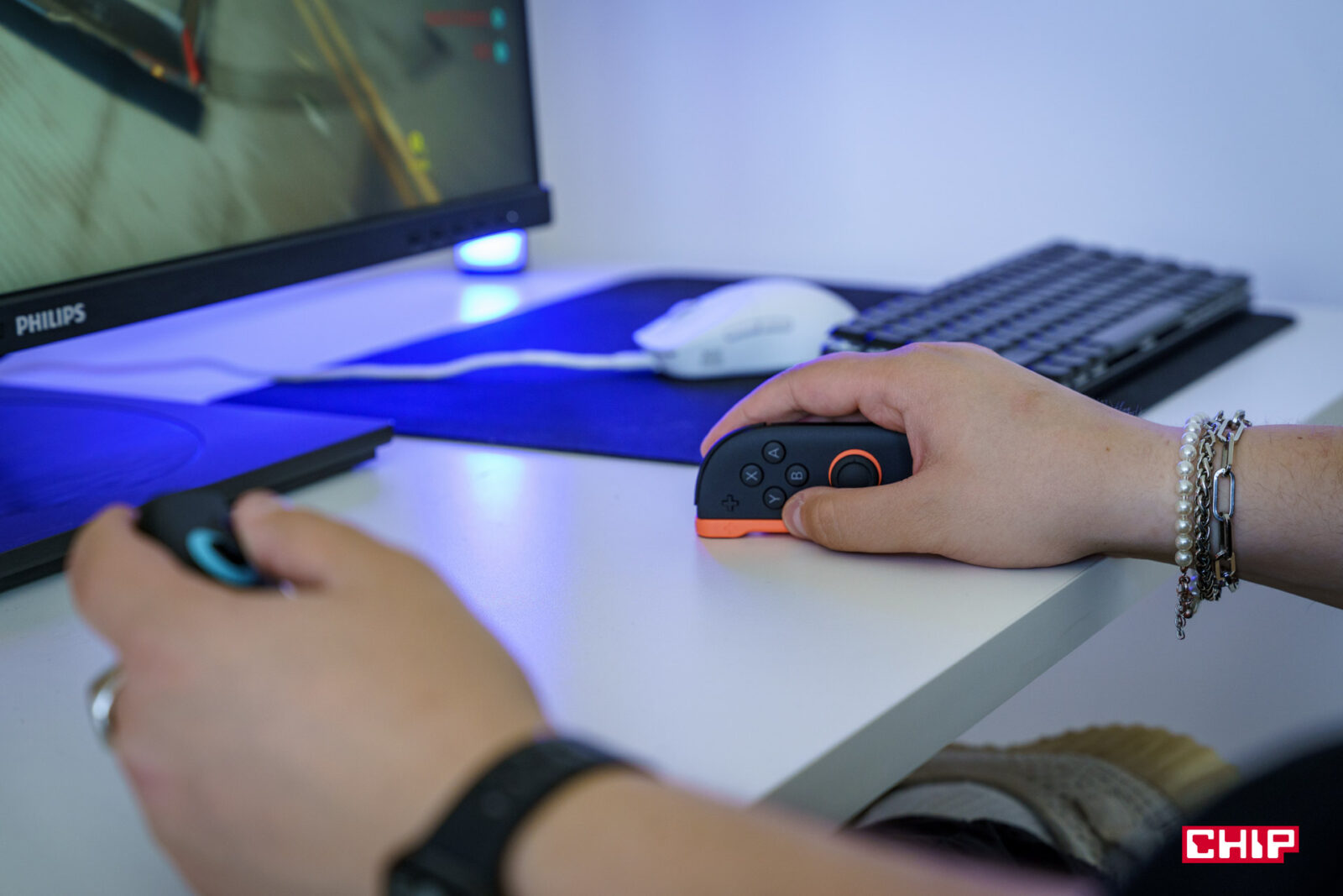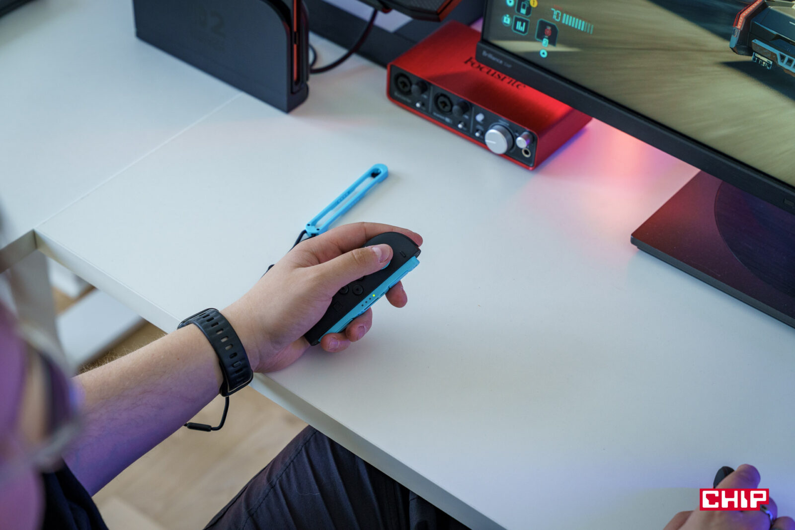 Wielkie N wyposażyło Joy-Cony także w funkcję myszy, dzięki czemu Joy-Con może być… jak myszka do komputera. Początkowo podchodziłem do tego pomysłu z rezerwą, ale to naprawdę świetna rzecz — umożliwia to precyzyjne celowanie w takich grach jak Cyberpunk 2077, Fortnite czy Metroid Prime, poprawia nawigację w niektórych menu, ale przede wszystkim może być to absolutny koniec jakiegokolwiek podziału na gry konsolowe i pecetowe. Myszka, która działa świetnie i na twardej powierzchni, i nawet na prześcieradle czy poduszce, otwiera masę nowych możliwości pod względem RTS-ów czy turówek, czego dowodem już jest obecność Cywilizacji 7 na Switchu 2. Chociaż od dzieciaka gram na konsolach i nie potrafię korzystać z myszki, tak tutaj Nintendo ma moje pełne uznanie.