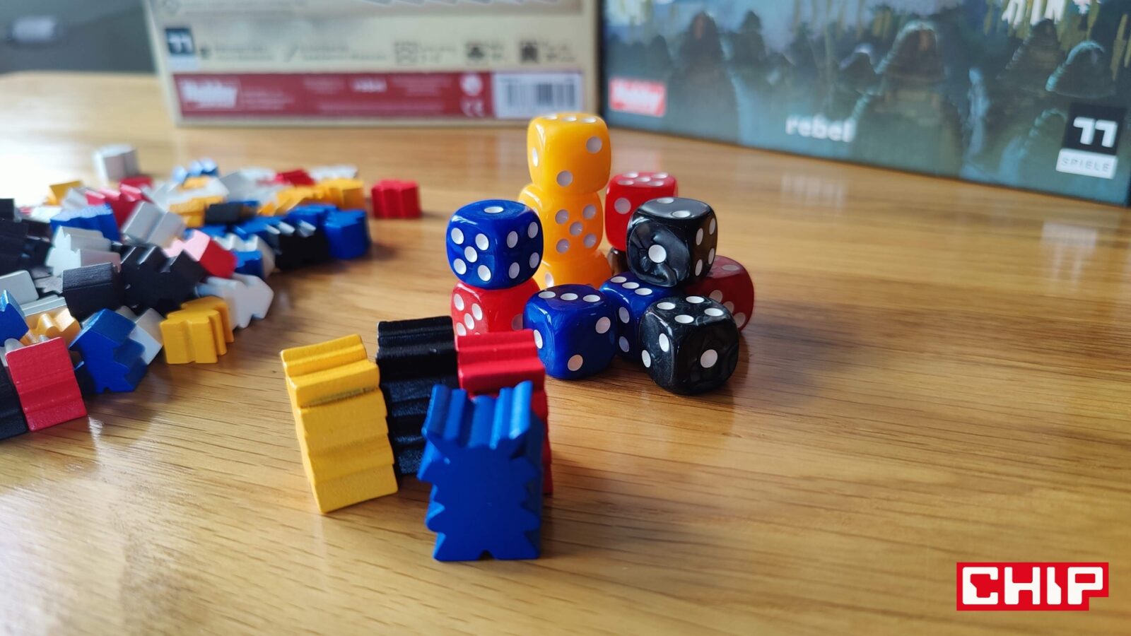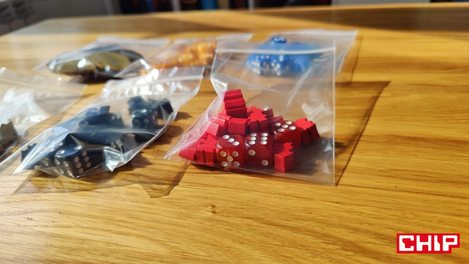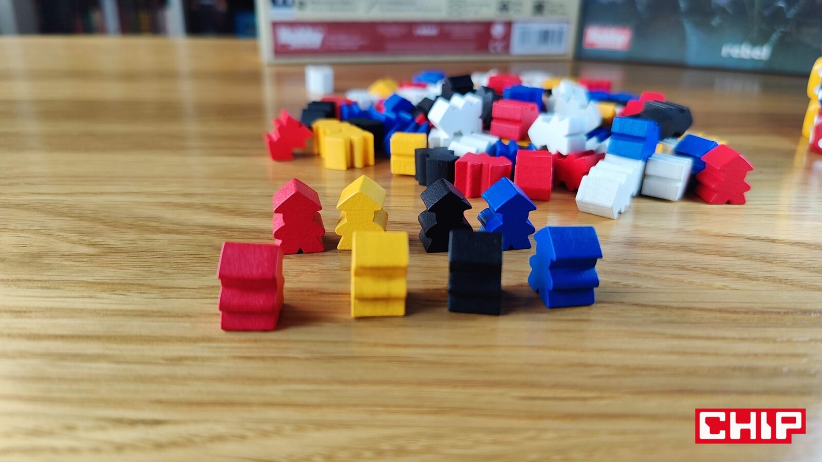 W całym zestawie najbardziej rozczarowała mnie forma pionków. Niby są drewniane i ładnie pokolorowane, ale brakuje im po prostu osobowości, która dorównywałaby fenomenalnie zaprojektowanym, bo pełnym charakteru kartom. Można jednak uznać taką prostotę za plus, bo dzięki temu na planszę “łatwiej się patrzy”. Trudno też przyczepić się do samej jakości poszczególnych elementów, bo te są po prostu dobre.