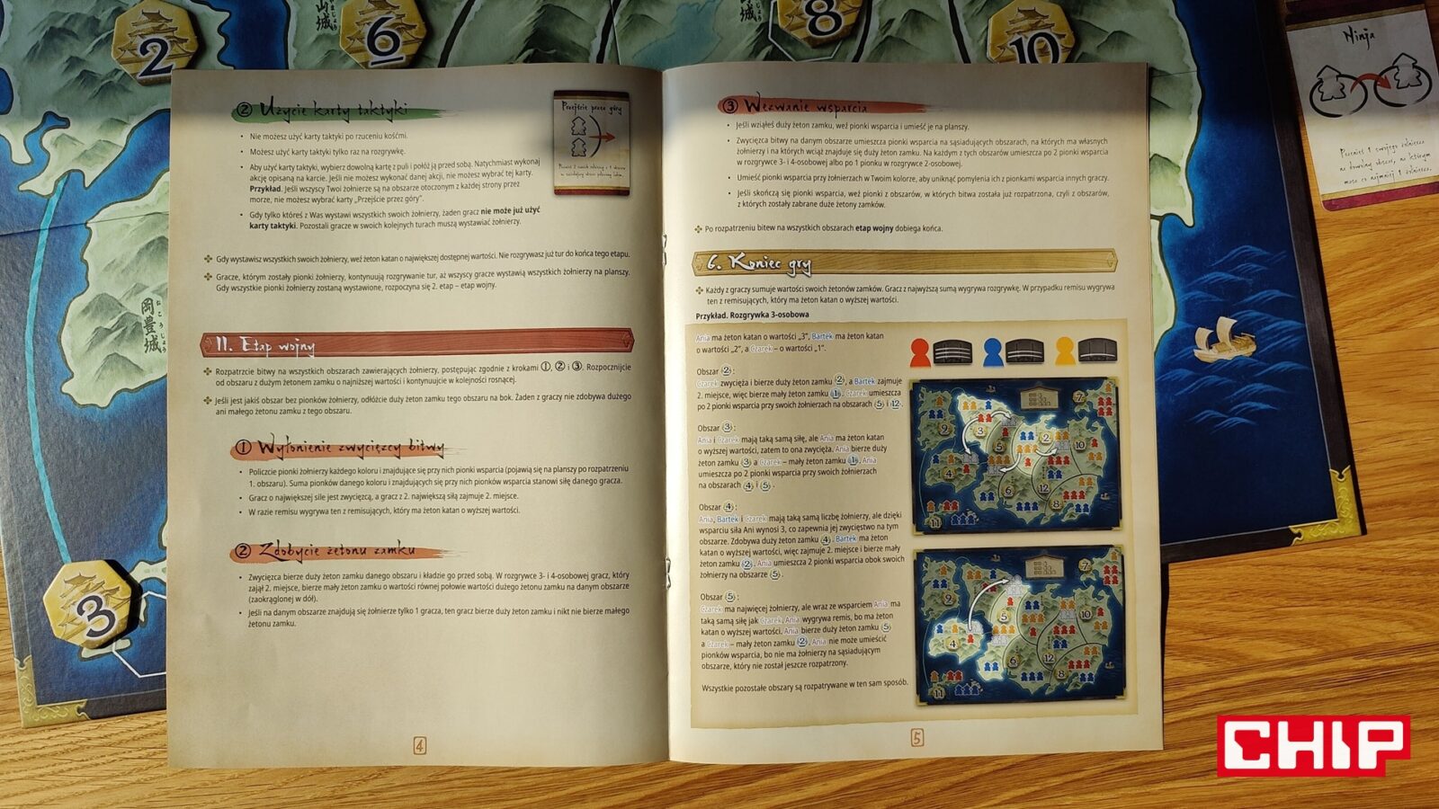 W Walczące prowincje miałem okazję zagrać zarówno w duecie, jak i w pełnym zestawie graczy i oba te scenariusze były pełne zabawy. Oczywiście przy czterech graczach robiło się ciekawiej, ale wtedy też łatwiej było wyczuć, jak wielki wpływ ma losowość na zabawę i jak niewiele można zdziałać kartą taktyki i swoim daimyō, aby zawalczyć z pechem. Nie jest to aż tak karzące, bo przecież w rozgrywce z 3 lub 4 graczami zdobywamy punkty za drugie miejsce, a na dodatek ma to swój urok, bo w efekcie dostajemy grę, w której musimy ciągle walczyć z losem i dostosowywać się do tego, co on przyniesie. Teoretycznie “problem” ten można byłoby rozwiązać ot budowaniem talii taktyk, ale wtedy Walczące prowincje byłyby grą zupełnie inną. Jaką? No, to już sugeruję sprawdzić na własnej skórze, bo jeśli kupicie tę pozycję, to sprawdzicie taki wariant, rozdając graczom na początku po trzy karty taktyki.