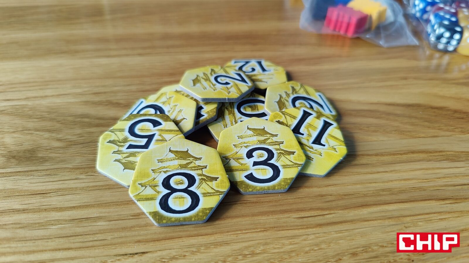 Z tego opisu wynika, że Walczące prowincje są proste, czyż nie? Na samym początku też wpadłem w tę pułapkę, ale spokojnie – tak źle nie jest. Proces bitwy jest bowiem realizowany w konkretnej kolejności (rosnąco wedle numerów na żetonach zamków), a każda wygrana pozwala zwycięzcy rozstawić pionki wsparcia (białe) na połączonych polach, o ile znajdują się tam jego pionki. To właśnie jest ten ciekawy twist, który znacznie zwiększa aspekt odpowiedniego planowania i strategicznego podejścia podczas grania w Walczące prowincje. Zwłaszcza że każda wygrana bitwa zapewnia żeton zamku (punkty) wygranemu i w przypadku grania w 3 lub 4 osoby również mniejszy żeton zamku (również punkty) drugiemu z kolei graczowi w bitwie.
