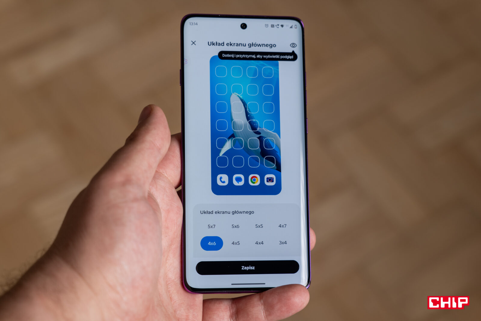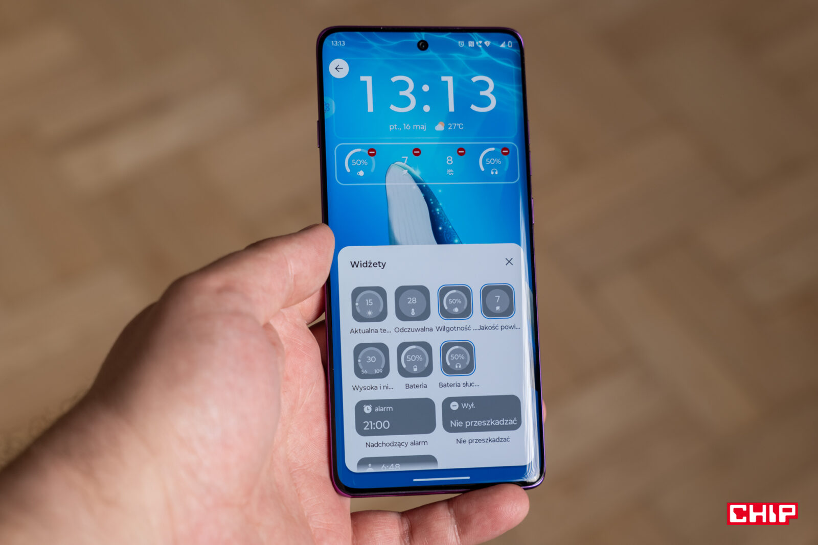 Unikatowość Hello UI uwidacznia się już w momencie pierwszego włączenia ekranu. Niestety wynika to z faktu, że nie mamy tu klasycznego ekranu zawsze włączonego, a jedynie taki reagujący na podniesienie telefonu lub dotknięcie ekranu. Spersonalizowanie jego wyglądu to spersonalizowanie wyglądu ekranu blokady. Na ten możemy przypinać widżety, wybrać sposób pokazywania powiadomień oraz zmienić skróty w dolnych narożnikach. Oprócz tego wybierzemy jeden z kilku stylów zegara.