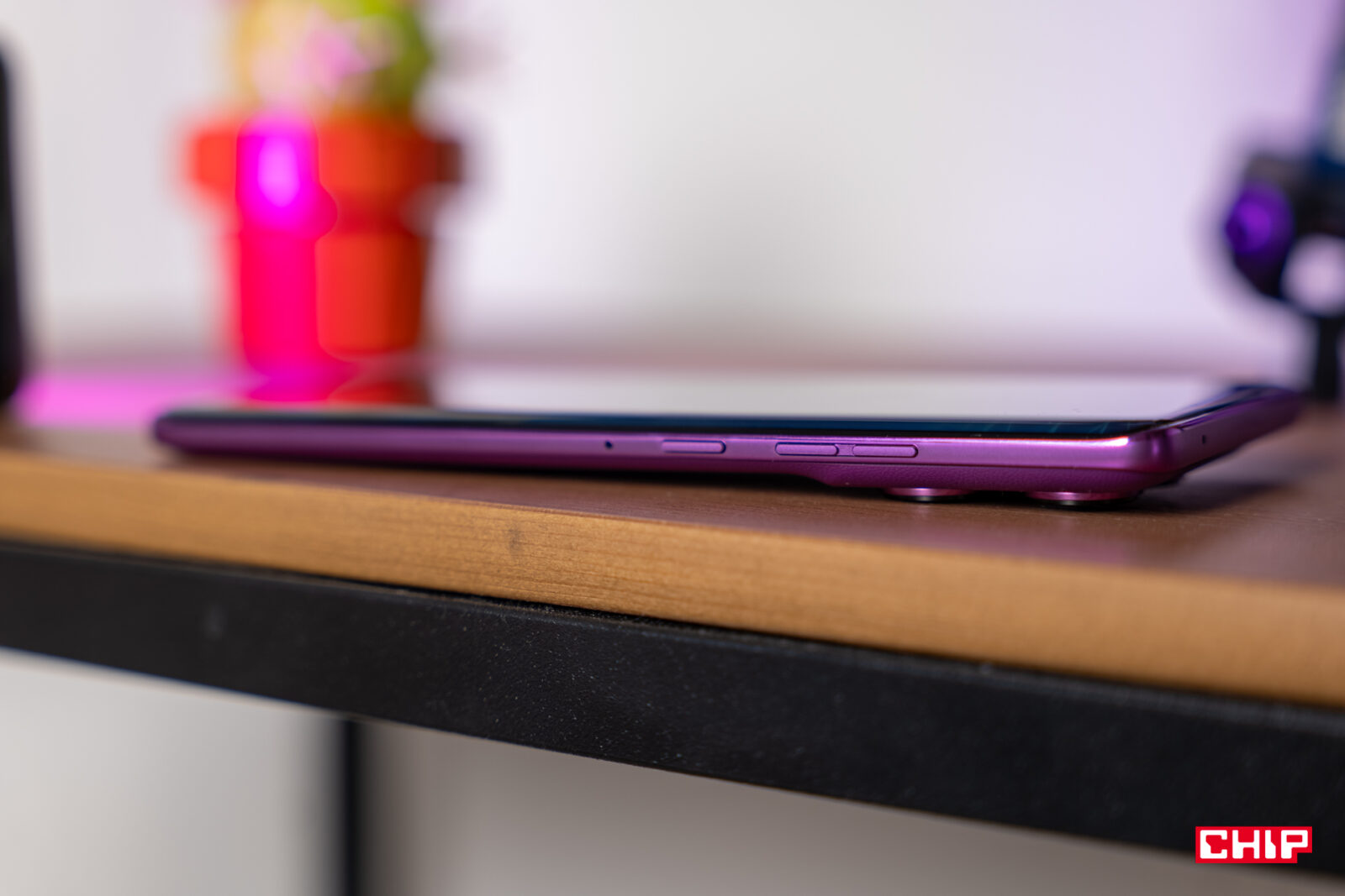 Na dłuższą metę bronią się także ramki wykonane z tworzywa. Pokryto je takim lakierem, że w trakcie testów się nie pobrudziły i nie nabyły żadnych rys. Ich wyprofilowanie wspomaga chwyt. Jednocześnie ich smukłość wymusiła zastosowanie węższych przycisków i to już nie do końca udany zabieg. Potrzeba większego nacisku, żeby kliknąć nasz przycisk. Motorola umieściła też przyciski głośności dość wysoko, podobnie jak przycisk aktywacji AI, który jako jedyny znajduje się na lewej ramce. Na dole, dość standardowo, umieszczono tackę na karty SIM, port USB-C oraz maskownicę głośnika.