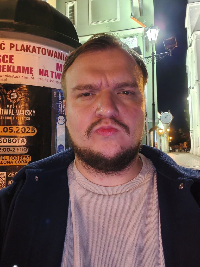 Podobnie nietrudno o poruszone zdjęcie w przypadku przedniego aparatu. I ponownie w fotografiach pojawiały się pewne defekty, które czyniły je niezdatnymi do publikacji w mediach społecznościowych. Same selfie też nie powalają jakością – na brzegach kadru potrafią znacząco stracić na detalach, a do tego smartfon ma tendencję do zaczerwieniania cery. Szczegółowość jest dobra, ale tylko jeśli nie poruszacie zbyt mocno ręką. Dobrze prezentuje się rozpiętość tonalna, ale to w zasadzie jedyny większy pozytyw. Fotograficznie Motorola edge 60 Pro nie dowozi.