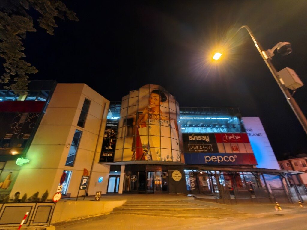 Nocą sprawa wygląda nieco inaczej, ale nie jest idealnie. Coś niedobrego wydarzyło się nocą w zdjęciach z Motoroli edge 60 Pro. Na biało-szarych elementach (np. ścianach) uwidaczniają się ogromne ilości cyfrowego szumu – coś, czego nie widziałem w zdjęciach nawet z najtańszych urządzeń. Sytuacja powinna się poprawić po aktualizacji, bowiem później takie zdjęcia się już nie pojawiły. Poza tym zdjęcia są poprawne i w zasadzie tyle. Znaczna część jest poruszona, a na niektórych światło odbije się w sposób znacznie zmieniający wygląd fotografii.