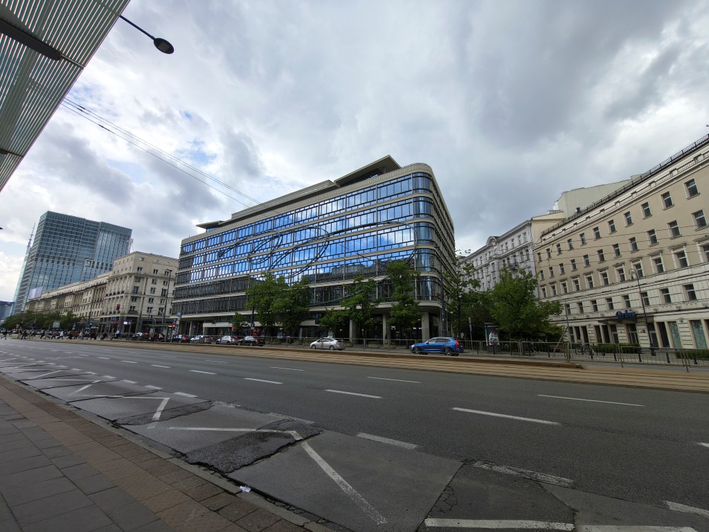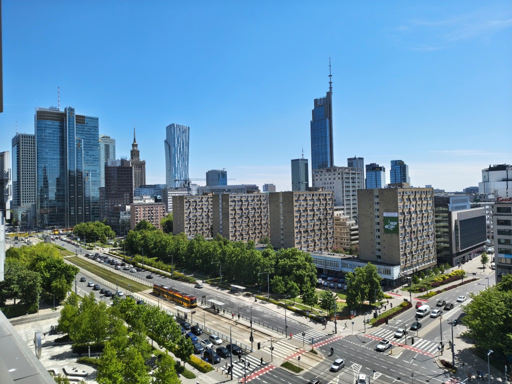 Jak wypadają zdjęcia z aparatu Motoroli edge 60 Pro? Jeśli chodzi o główny aparat, to nie mogę mieć większych zarzutów poza dwoma. Pierwszy dotyczy kolorystyki. Ta określana przez producenta jako naturalna nieraz mocno odbiega od rzeczywistości. Przede wszystkim podkręca wyraźne kolory kosztem szarości, segmentując fotografie. O ile pałac kultury wypada zatem dość zgodnie z tym, co widzimy, tak niebo za nim czy kolory tramwaju są niczym z obrazka.