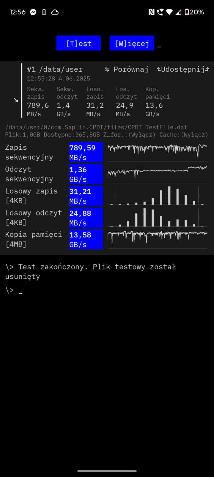 Testowany egzemplarz oferuje 12 GB RAM-u i 512 GB przestrzeni na pliki. Jest to jedyna wersja pamięciowa w oficjalnej dystrybucji w Polsce.