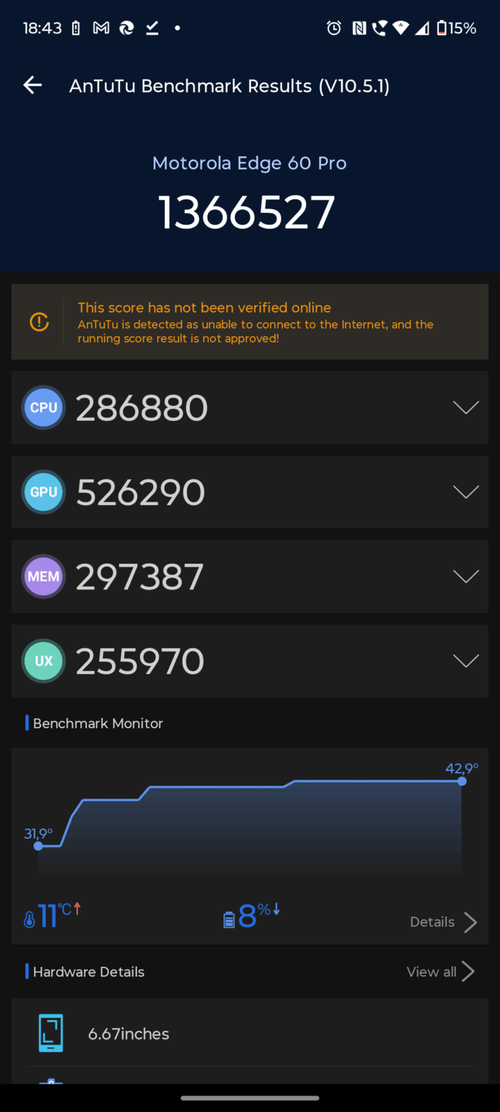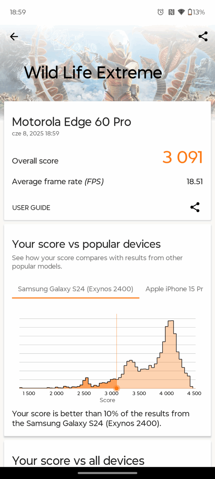 Większość producentów w średniej półce nie stawia na rekordową wydajność, a do wyjątków należałoby zaliczyć smartfony POCO czy realme. Motorola idzie z kolei drogą wydajności adekwatnej do klasy cenowej, czasem z odrobinę większą mocą obliczeniową niż można by się tego spodziewać. Tak jednak nie jest, bo MediaTek Dimensity 8350 Extreme mimo groźnego dopisku nie jest potentatem rynku, a raczej układem z aspiracjami. Układ graficzny Mali G615-MC6 także nie zapewni nam najlepszej jakości grafiki, ale powinien poradzić sobie z wysokim poziomem detali.