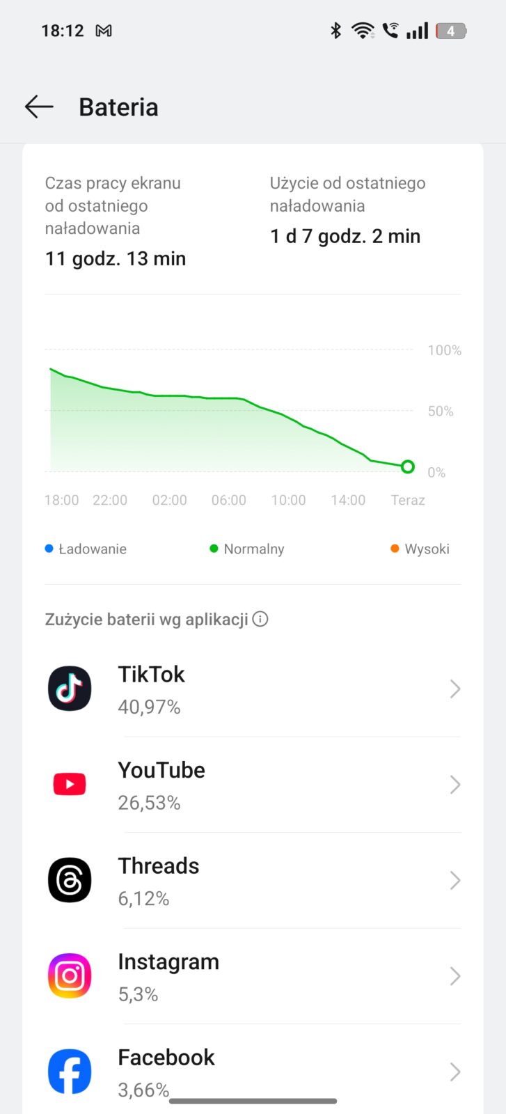 Nie chcę powiedzieć, że realme GT7 całkowicie położyło te aspekty, bo byłoby to nieprawdą. Zwracam jedynie uwagę, że rezultat mógł być lepszy. Rozładowanie tego telefonu w zwyczajnym dniu korzystania to trudna sztuka i nie zrobicie w ciągu jednego dnia, jeśli nie przykleicie się mocno do telefonu. Jednocześnie nie do końca udała się sztuka zarządzania energią podczas korzystania z sieci komórkowej. Wtedy nie dość, że smartfon odczuwalnie się grzeje (czego bateria nie lubi), to jeszcze traci procenty niczym smartfony ze znacznie mniejszą pojemnością. Na LTE/5G osiągałem 6 godzin czasu pracy.