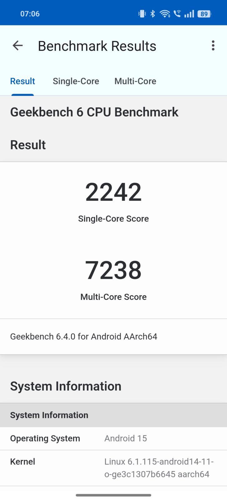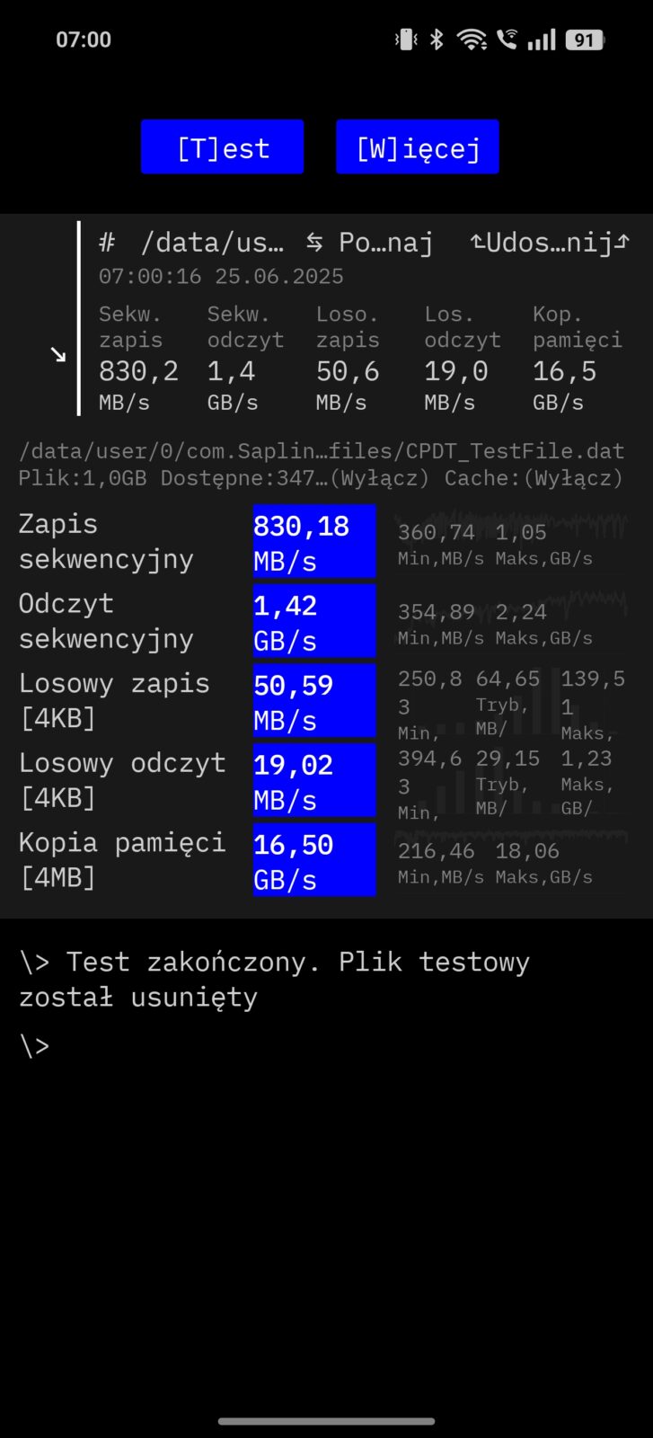 W realme GT 7 postawiono na mocny układ. MediaTek 9400e to już niemal flagowe rozwiązanie. Producent postawił na architekturę procesora opartą o 4-nanometrowe rdzenie Cortex-X4 o taktowaniu 3,4 GHz oraz 2,85 GHz, a także 4 rdzenie Cortex-A720 2 GHz. Całość dopełnia układ Immortalis-G720 MC12, który możecie znać chociażby z recenzji Xiaomi 14T Pro. W kwestii pamięci postawiono na 12 GB RAM-u LPDDR5X, a pliki zapisywane są na pamięci UFS 4.0. Na papierze to więcej, niż potrzeba do codziennych zastosowań, a jak ma się to do korzystania na co dzień?