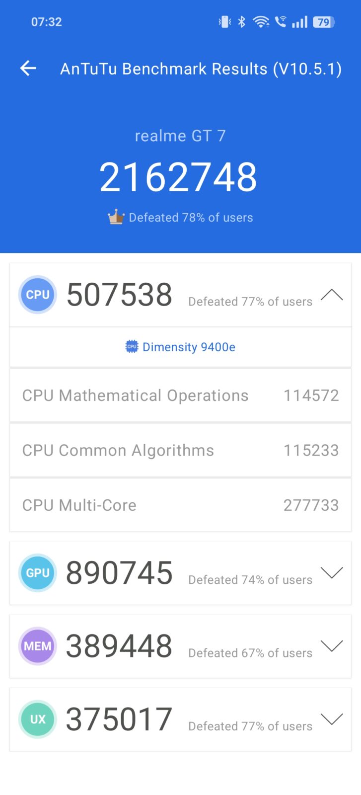 Wydajność MediaTeka 9400e w realme GT 7