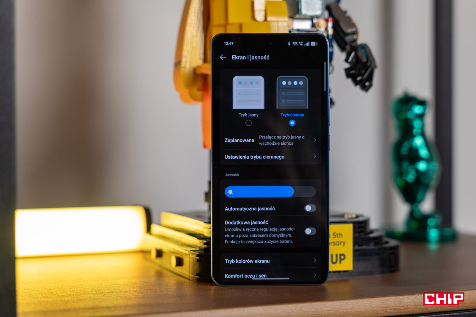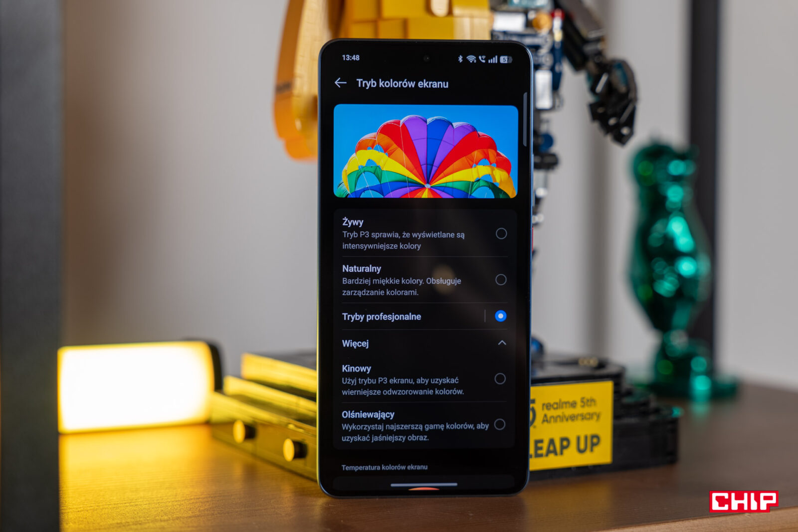 Trudno mieć do tego ekranu większe pretensje. Jasne, chciałbym matową powłokę na wzór tej z Samsunga Galaxy S25 Ultra czy ciut lepsze kąty widzenia przy odchylaniu telefonu, bo czasem biel staje się żółtawa. Jednocześnie nie mogę przyczepić się jasności minimalnej, z kolei maksymalna osiąga około 2250 luksów i to także jest w porządku. Jedynie mogłoby dochodzić do mniejszych rozbieżności pomiędzy fragmentami ekranu, gdyż te wynoszą około 100 luksów. Kolory na tym ekranie także prezentują się bardzo przyjemnie dla oka i ich odwzorowanie względem rzeczywistości jest domyślnie bardzo dobre. A do tego możemy przejąć nad nim niemal pełną kontrolę.