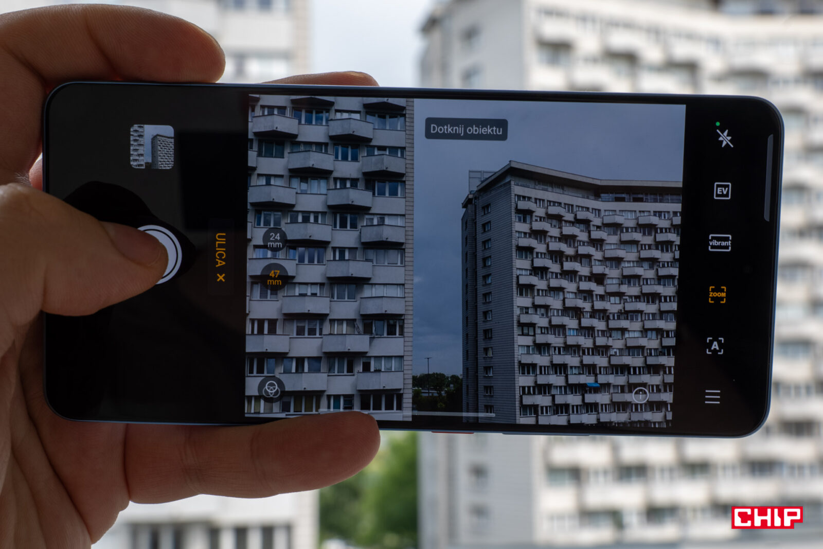 W aplikacji aparatu od lat nie dochodziło do istotnych zmian, ale realme wprowadziło dwie ciekawostki. Pierwsza to przełącznik ustawień rejestrowania z crisp na vibrant. W jednym przypadku priorytet stanowi ostrość, w drugim – nasycenie i szeroka paleta barw. Do tego wśród dodatkowych trybów pojawił się “Pejzaż AI”, który tak naprawdę pełni rolę konkretnych ustawień dobieranych pod to, co fotografujemy. Kto pamięta pierwsze podrygi AI w smartfonach za czasów Huawei’a P30 Pro, ten będzie wiedział, o co chodzi. Do tego ten tryb asystuje przy kompozycji i pozwala na redukcję zamglenia kadrów.