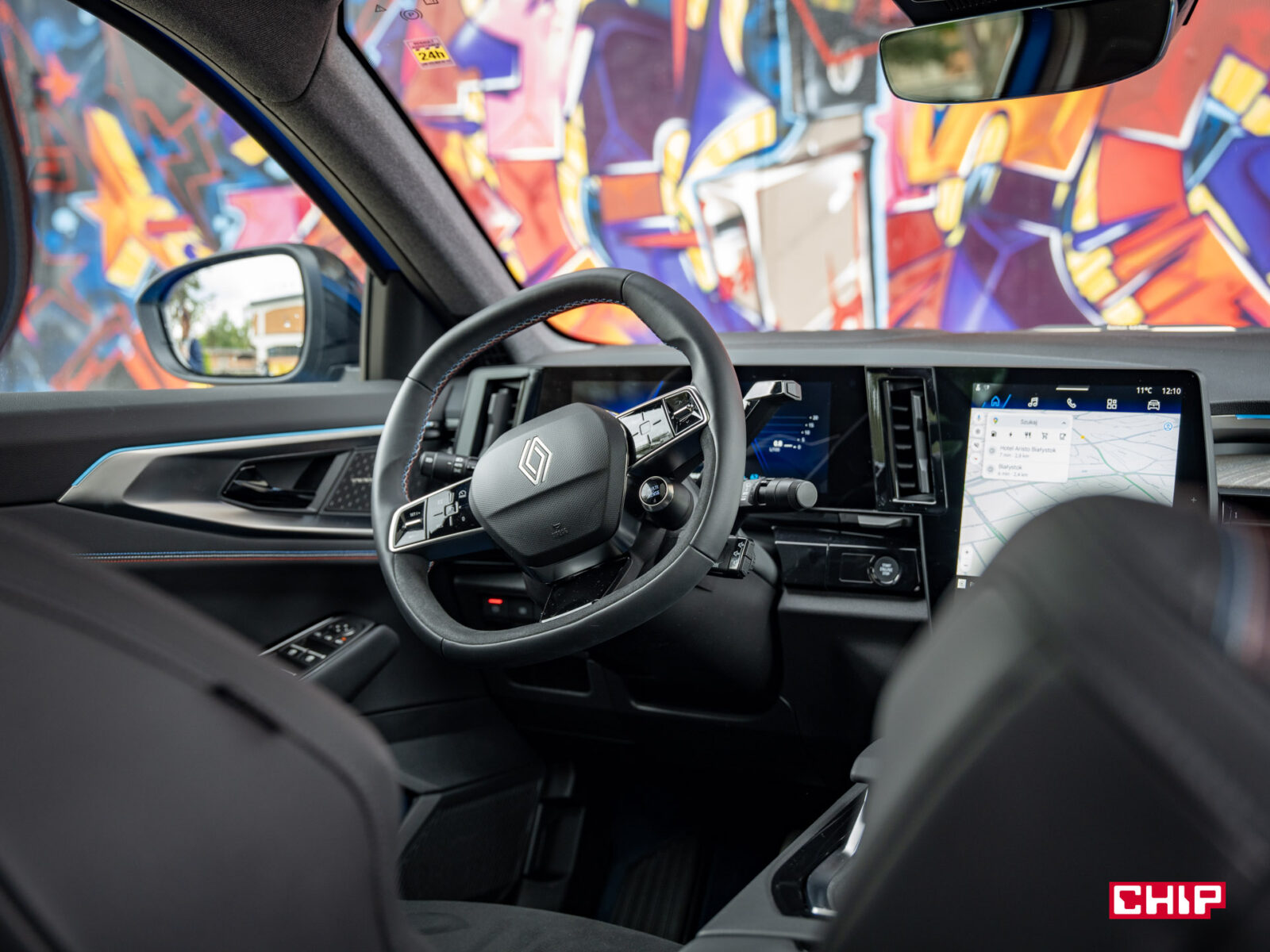 Ekrany w Renault Rafale mają przekątną ponad 12 cali, z czego ekran kierowcy jest o typowych proporcjach i układzie, a ekran główny ustawiono w pionie. Niestety nie ma nigdzie danych na temat ich rozdzielczości, a szkoda, bo pod tym względem Renault ma czym się pochwalić.