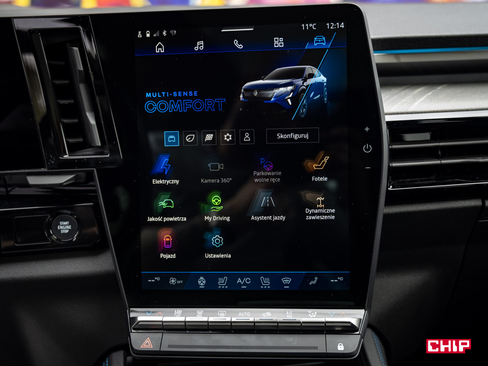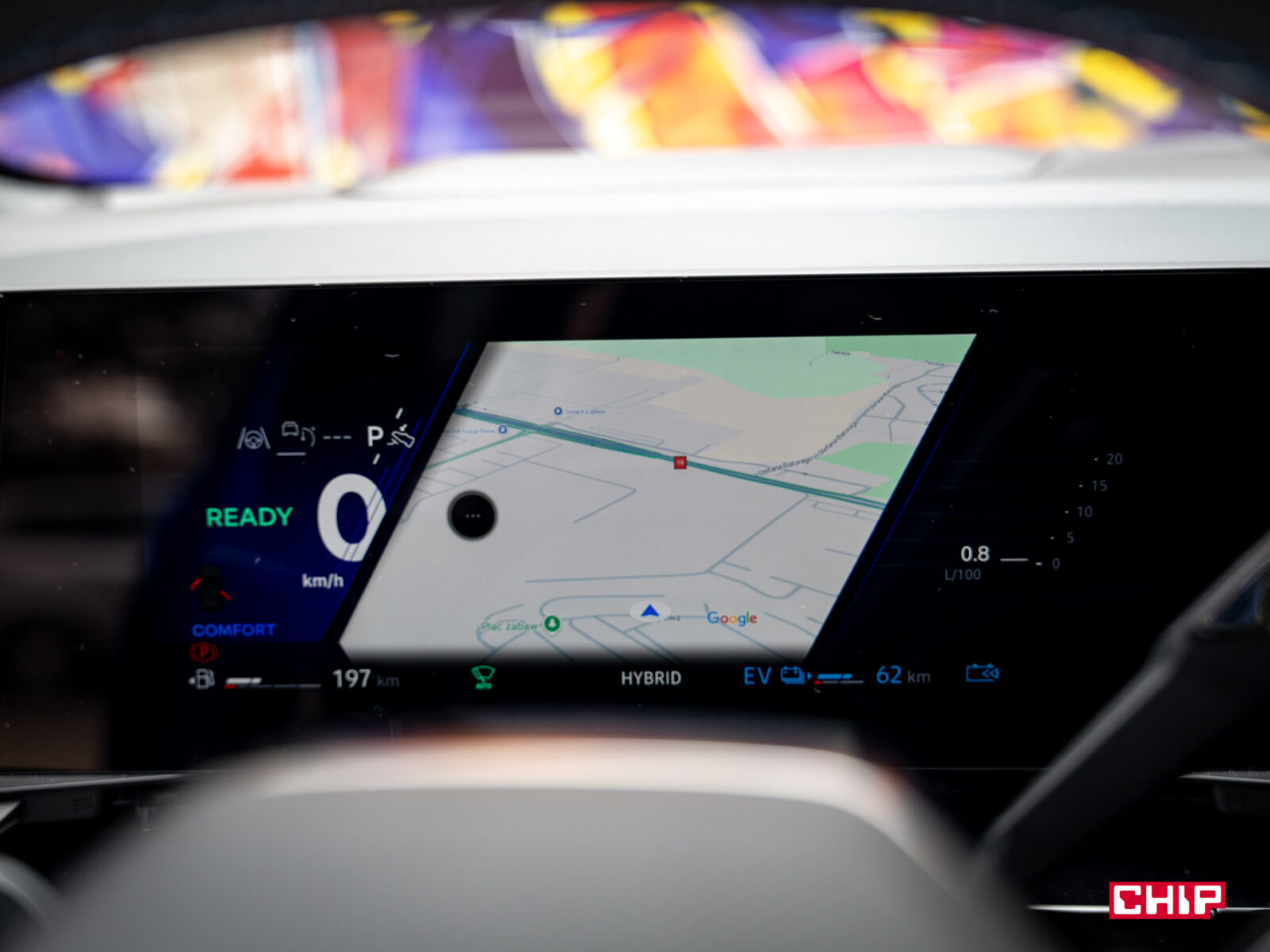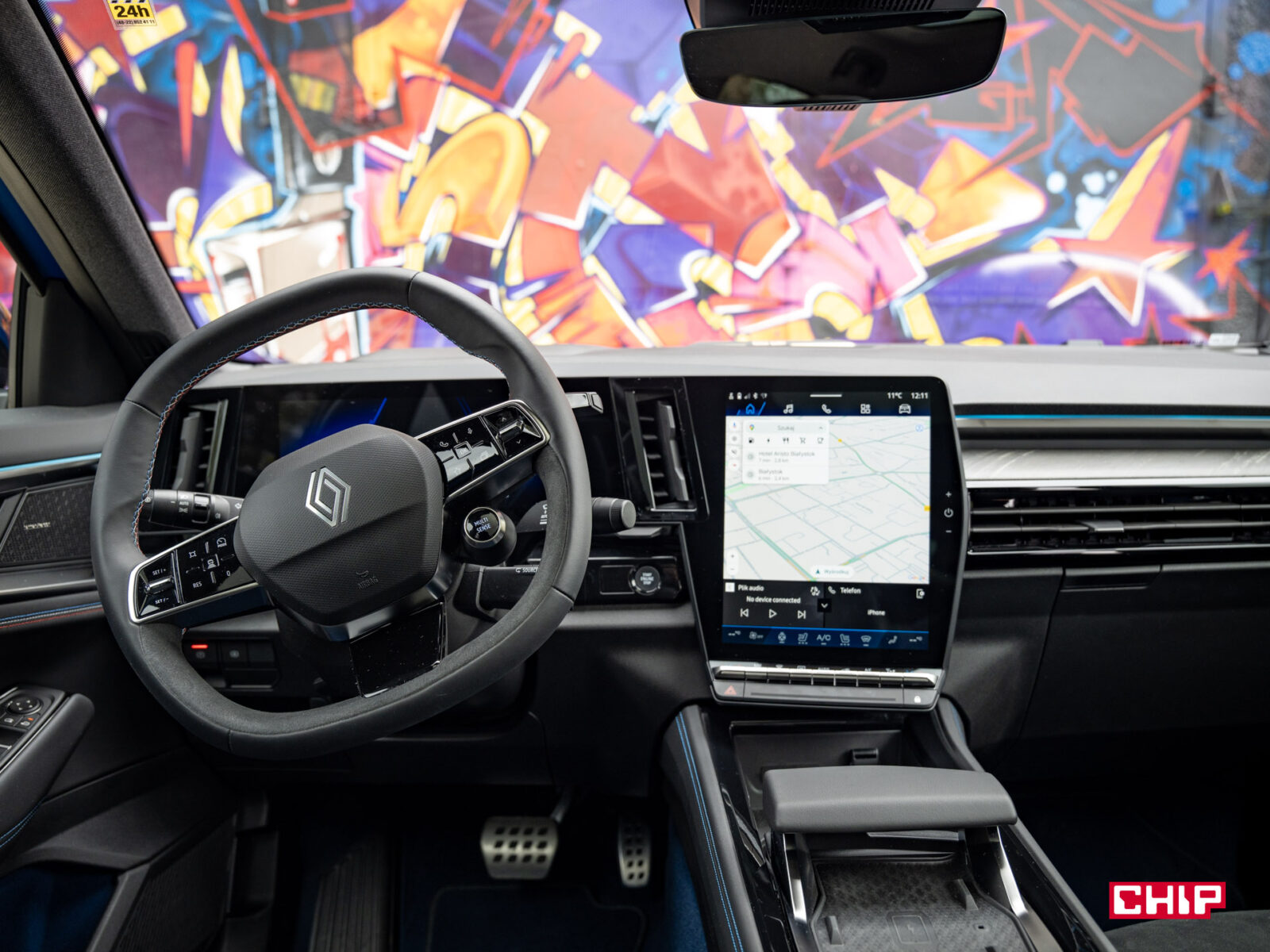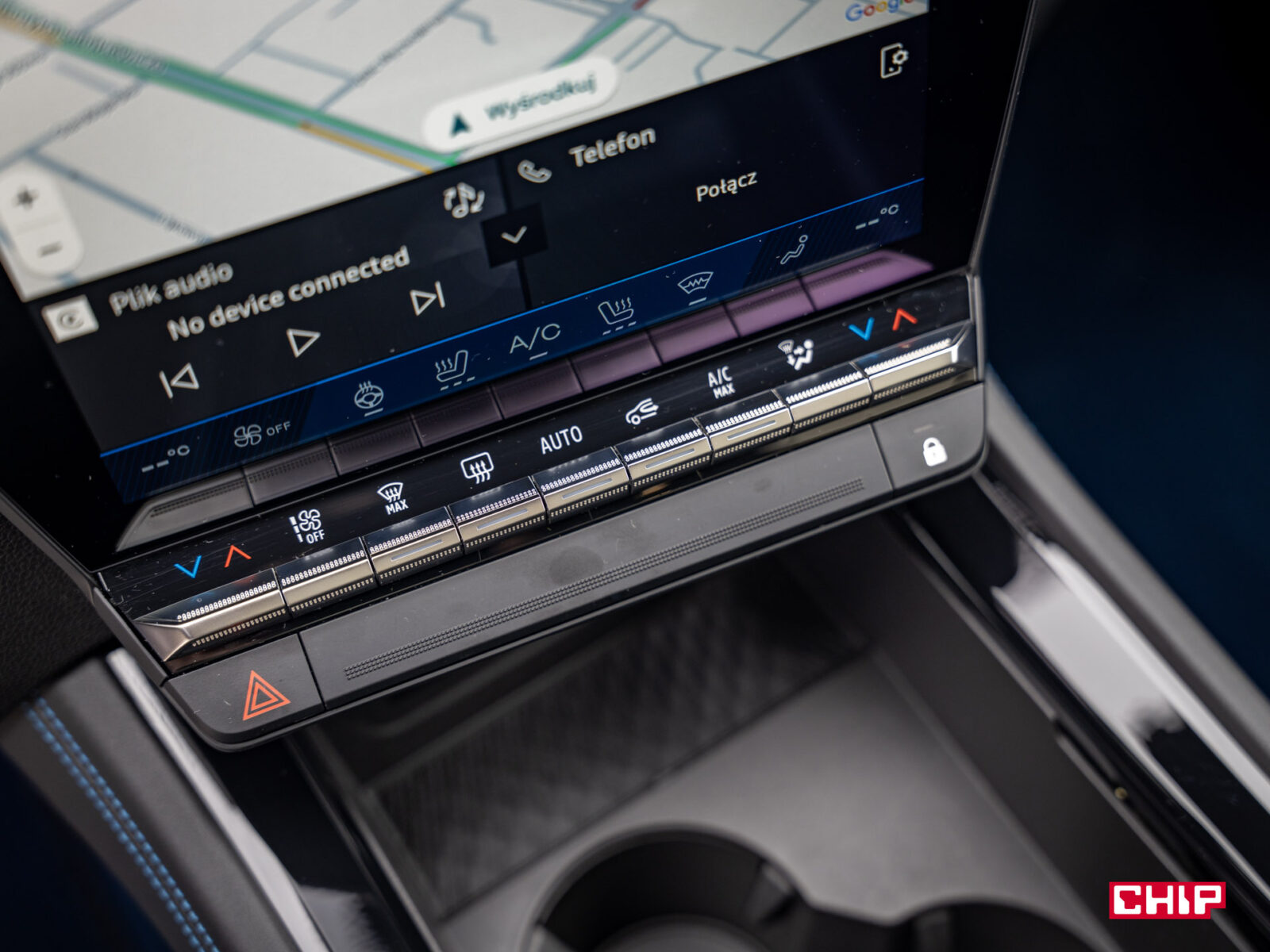 Obraz jest bardzo szczegółowy, a grafiki interfejsu cieszą oko. Zastosowany system to Android Automotive, który w standardzie daje nam dostęp do usług Google, w tym Map czy sklepu Google Play. Więc smartfon parujemy z autem w zasadzie tylko po to, żeby korzystać z zestawu głośnomówiącego. Oczywiście jeśli ktoś uparcie woli Apple CarPlay to nie ma problemu, można z niego korzystać jak w każdym innym aucie.