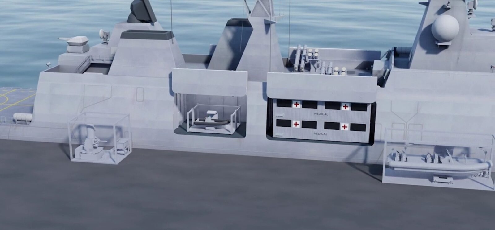 System Cube ma pozwalać dowolnej jednostce, bo od okrętu patrolowego przez statek logistyczny aż po wybrany kadłub cywilny błyskawicznie zmienić rolę w porcie lub nawet bezpośrednio na morzu. System wykorzystuje kontenery o długości 20 lub 40 stóp (to standard) i wymaga od okrętu posiadania wnęk “Cube-ready”, a więc specjalnych slotów na kontenery, które to robią użytek z systemów szynowych oraz hydraulicznych zabezpieczeń, co eliminuje potrzebę stosowania dźwigów czy kosztownych przeróbek kadłuba.