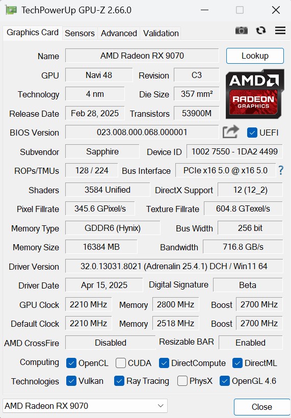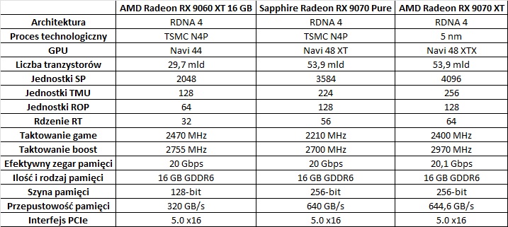 Specyfikacja Sapphire Radeon RX 9070 Pure