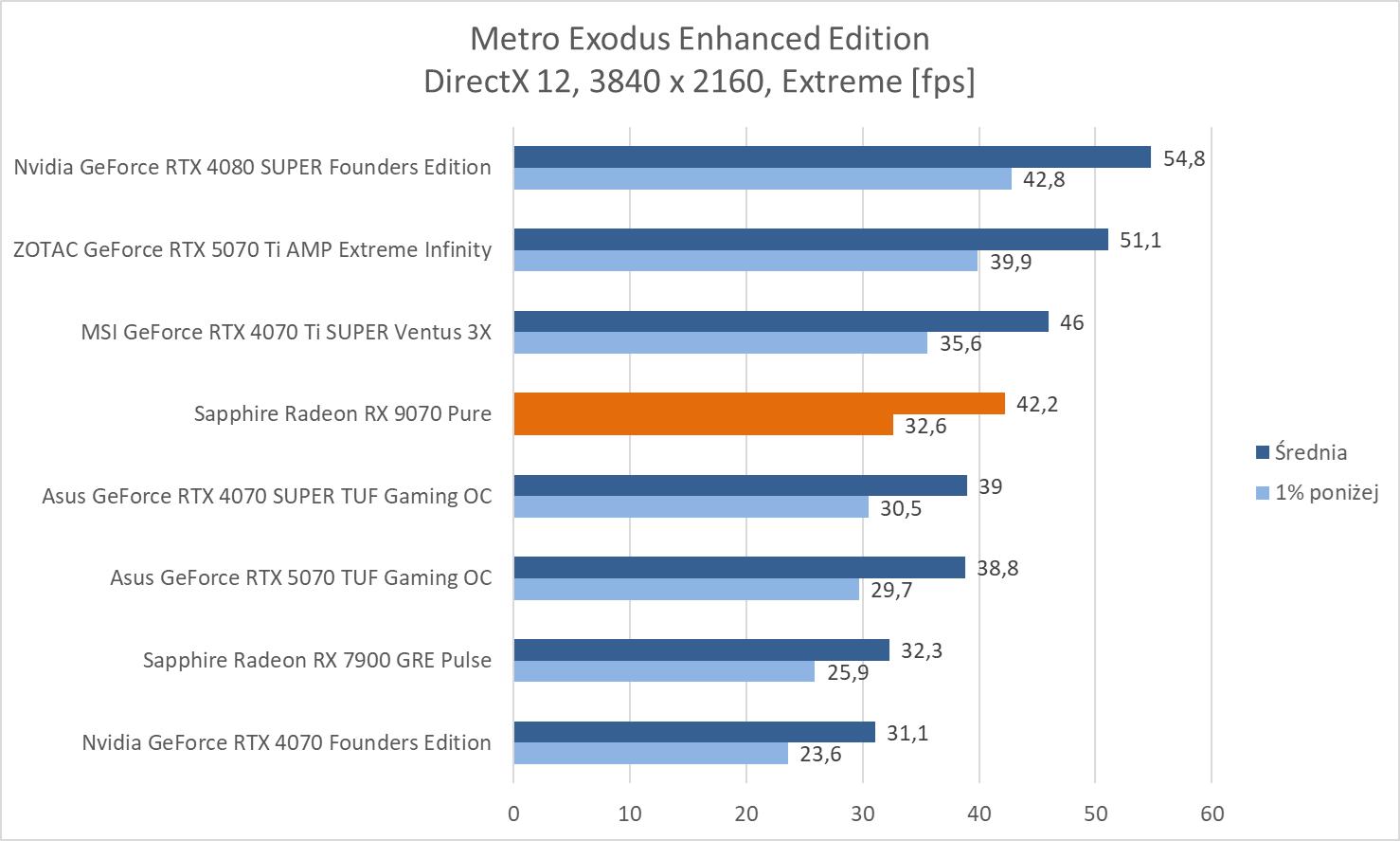 W kolejnej jest już tylko Metro z wynikiem powyżej 60 fps.