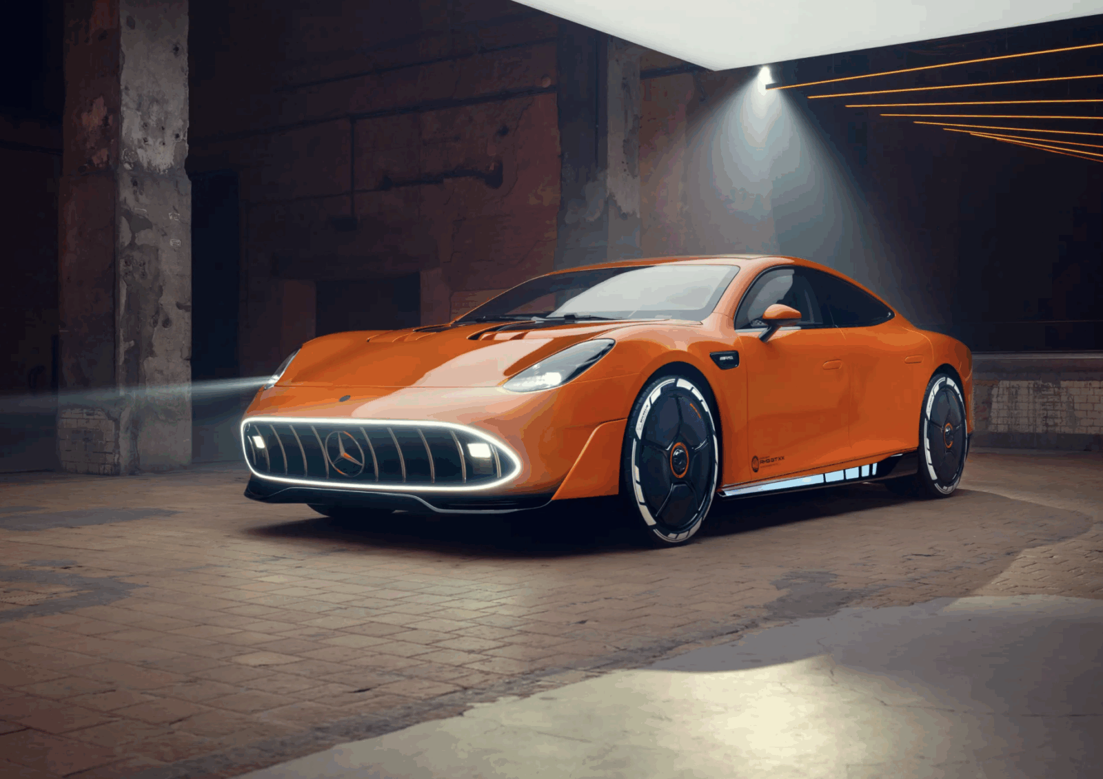 GT XX to nie tylko platforma testowa dla nowego napędu, lecz pełnoprawny supersamochód o stylistyce, która łączy awangardę z klasyką. Z jednej strony widać tu silne inspiracje legendarną 300 SLR – charakterystyczny przód z wydłużoną maską i muskularne nadkola są ukłonem w stronę dziedzictwa marki. Z drugiej – detale takie jak karbonowe wstawki, kierownica typu “yoke”, podświetlane akcenty wnętrza czy programowalne światło tylne nadają całości niemal cyberpunkowego sznytu.