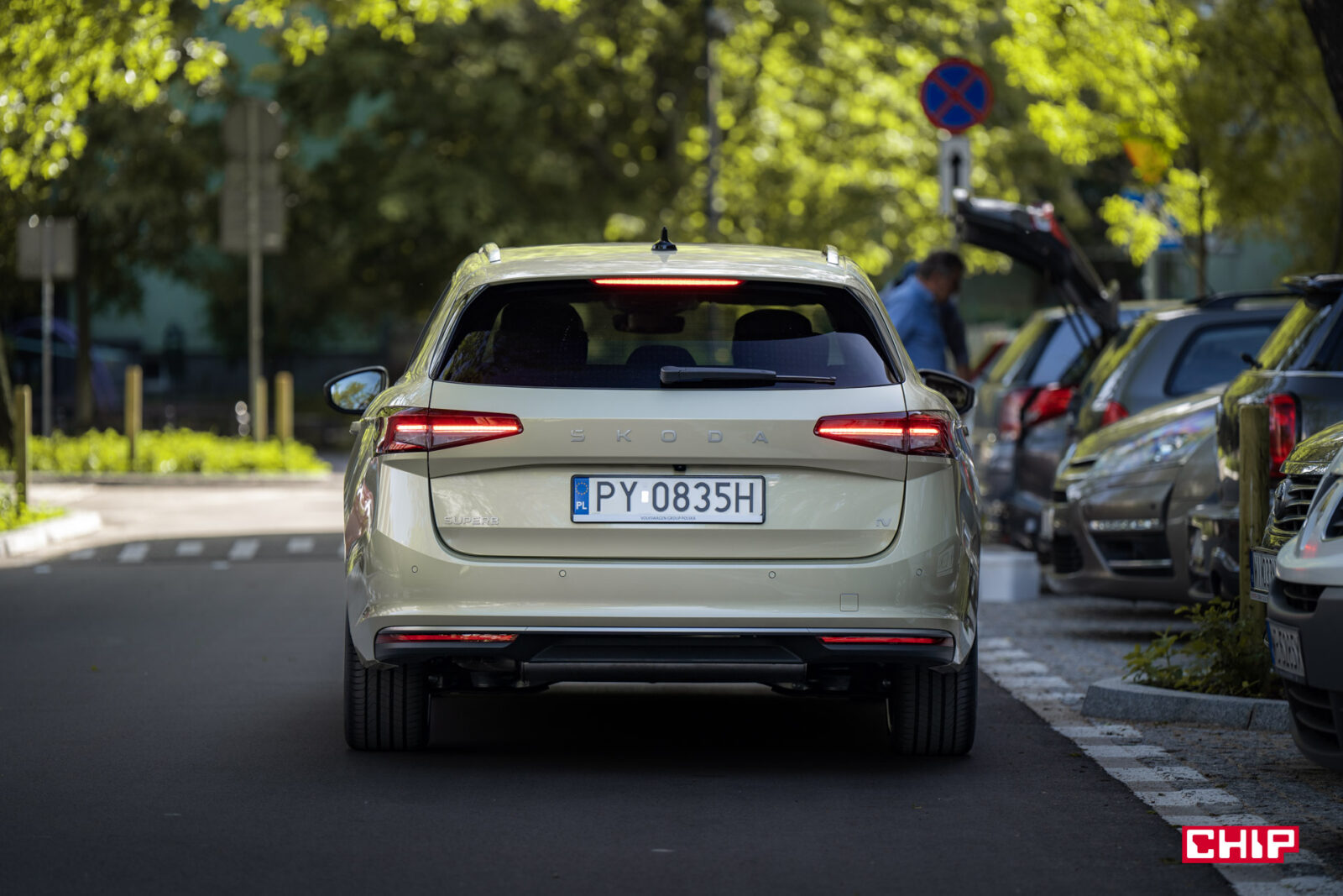 Przestronność, zwłaszcza z tyłu, pozostaje mocną stroną Superba. Komfort termiczny zapewnia trzystrefowa klimatyzacja Climatronic. Nie zabrakło licznych rozwiązań “Simply Clever”, takich jak skrobaczka do szyb sprytnie ukryta w klapce od tankowania, parasol w drzwiach, uchwyt na tablet czy port USB-C w lusterku wstecznym. Wprowadzenie fizycznych pokręteł Smart Dials można postrzegać jako próbę odpowiedzi na krytykę interfejsów opartych wyłącznie na ekranach dotykowych. Wiele współczesnych samochodów przenosi większość funkcji na ekrany, co bywa krytykowane za ergonomię i konieczność odrywania wzroku od drogi. Skoda, oferując Smart Dials, zdaje się szukać kompromisu. Podobają mi się te pokrętła – stanowią połączenie nowoczesności z tradycyjną obsługą. Może to stanowić atut wobec modeli, które poszły zbyt daleko w cyfryzację interfejsu.