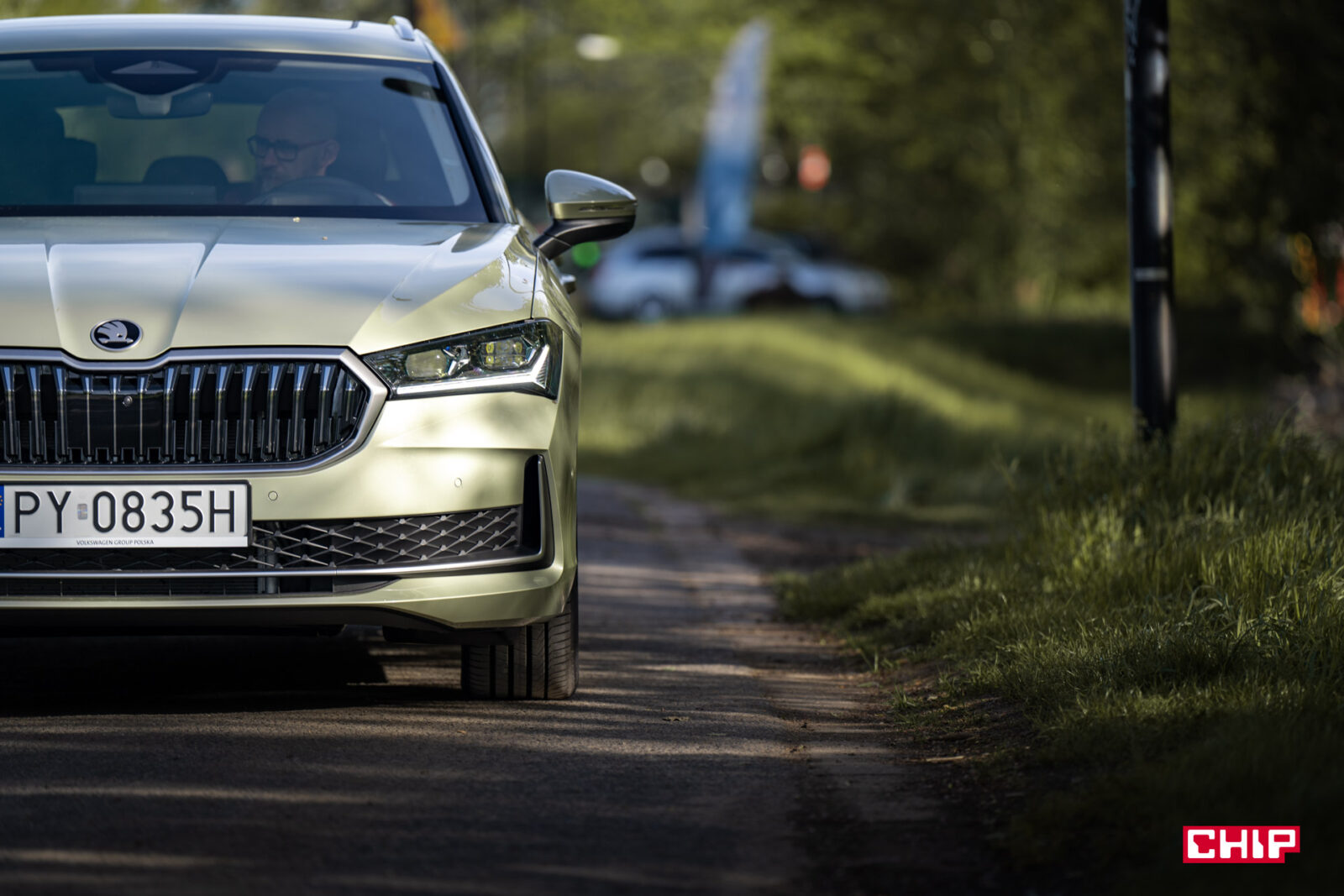Mimo znacznej masy własnej (1853-1987 kg z kierowcą około 80 kg), nowy Superb LK, dzięki platformie MQB Evo, DCC Plus i progresywnemu układowi kierowniczemu, oferuje przyzwoite właściwości jezdne. Pojazdy PHEV są cięższe, co może wpływać na zwinność. Jednak nowy Superb wydaje się tu bardziej precyzyjny niż poprzednik i prowadzi się pewnie, z dobrą kontrolą przechyłów. Wygląda na to, że Skoda starała się zestroić zawieszenie i układ kierowniczy tak, aby zminimalizować odczucie masy.