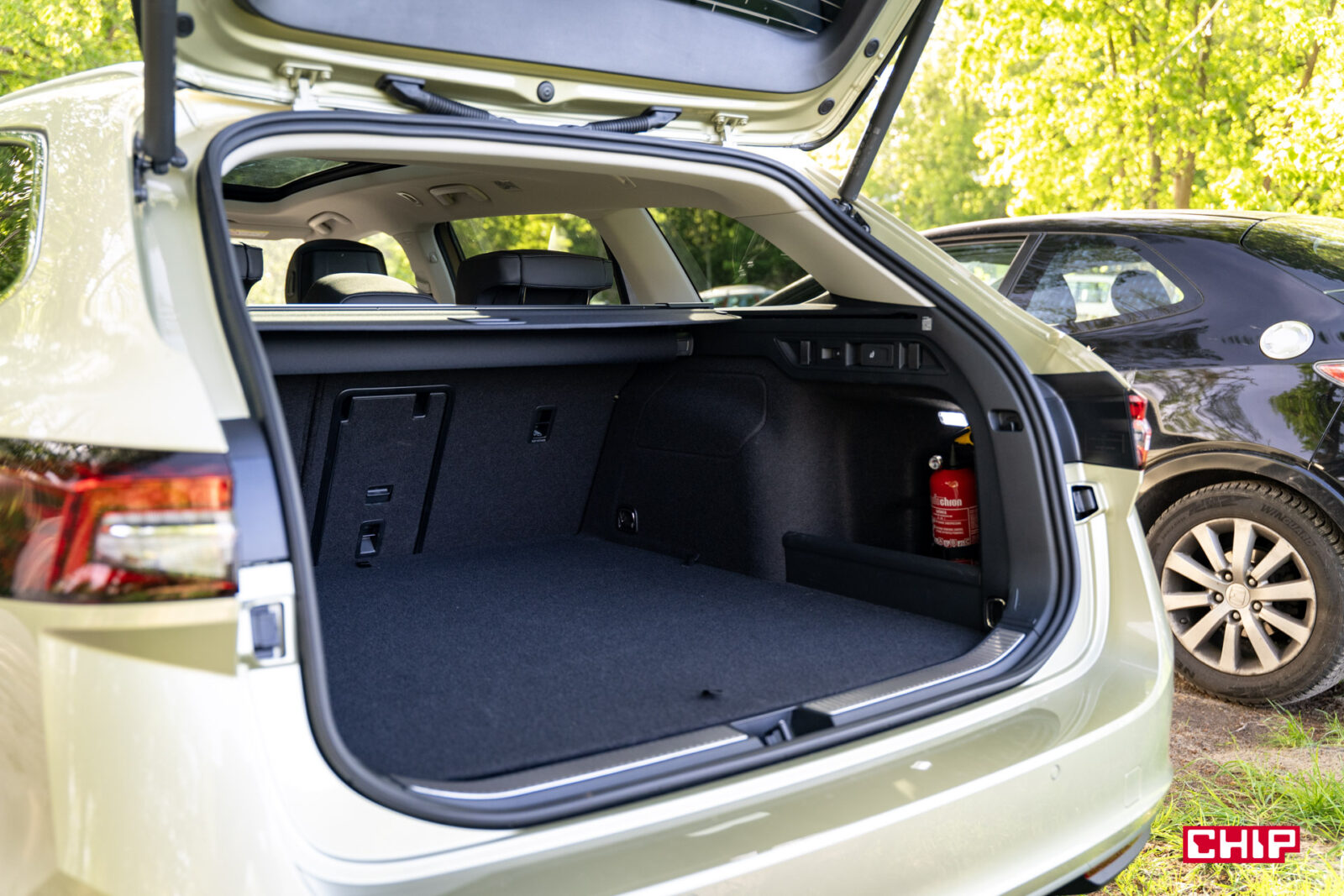 Praktyczność i pojemność bagażnika to tradycyjnie mocne strony Superba Combi. W wersji PHEV, ze względu na baterię, przestrzeń ładunkowa jest mniejsza, ale wciąż znaczna. Przy rozłożonych tylnych siedzeniach bagażnik oferuje 510 litrów. Po złożeniu oparć (dzielonych 60:40) przestrzeń wzrasta do 1770 litrów. Dla porównania, wersje spalinowe oferują 690 litrów (1920 litrów po złożeniu siedzeń). Funkcjonalność bagażnika podnoszą m.in. elektrycznie sterowana pokrywa z funkcją Virtual Pedal (standard w LK) oraz elektrycznie sterowana roleta. Dostępne są również systemy siatek i haczyków (Simply Clever). Superb Combi może holować przyczepę o masie do 1800 kg (z hamulcami).