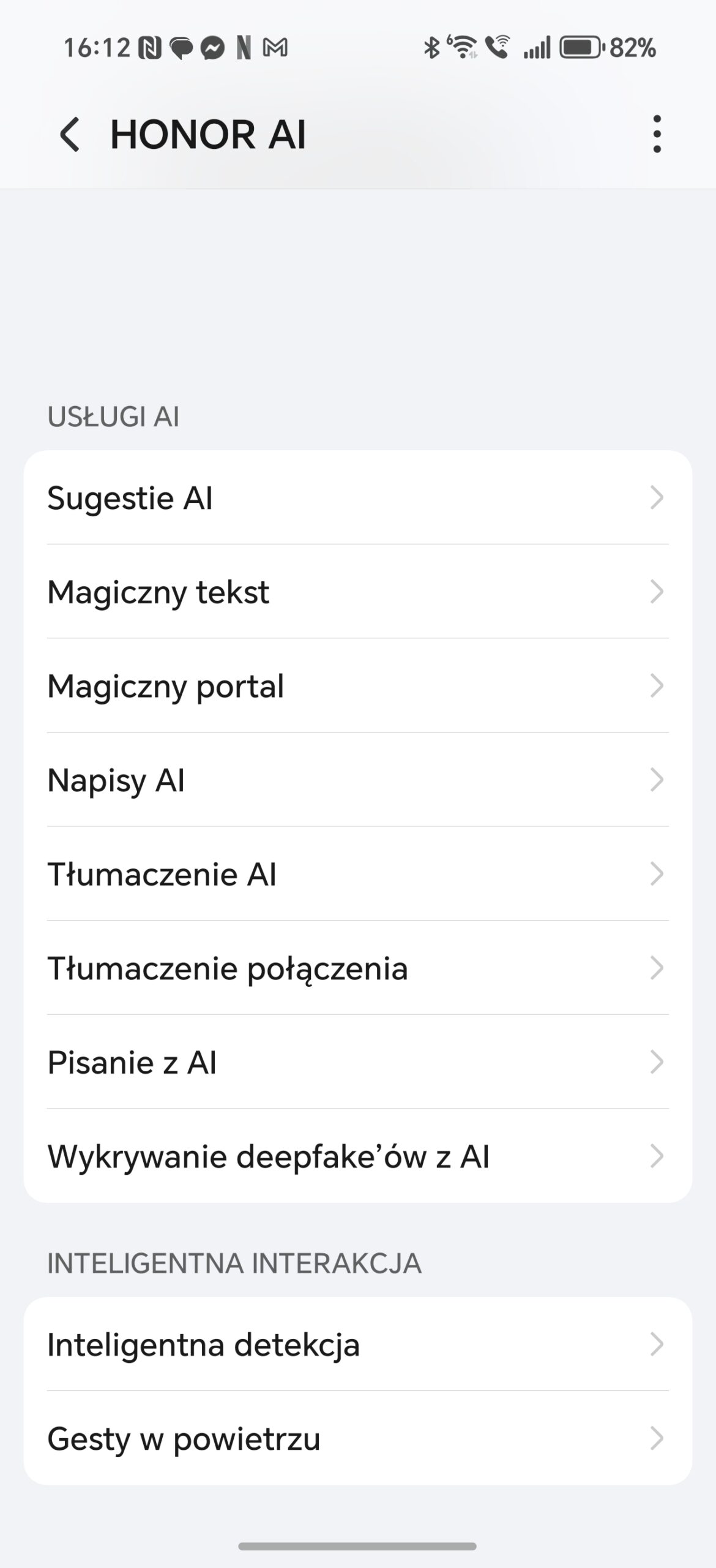 Osobna kategoria to AI fotograficzna – dzięki niej automatycznie poprawiane są zdjęcia, można wymazać ludzi z obrazka, rozszerzyć obrazek. Nowością jest usuwanie refleksów i możliwość zamiany obrazków w krótkie, 5-sekundowe video przy pomocy Vertex AI od Google’a. I jakkolwiek nie przepadam za wszechobecną AI w smartfonach, to to, co demonstruje Honor, potrafi zrobić wrażenie. Oczywiście przydałoby się, gdyby część tych funkcji doczekała się w końcu wsparcia dla języka polskiego.