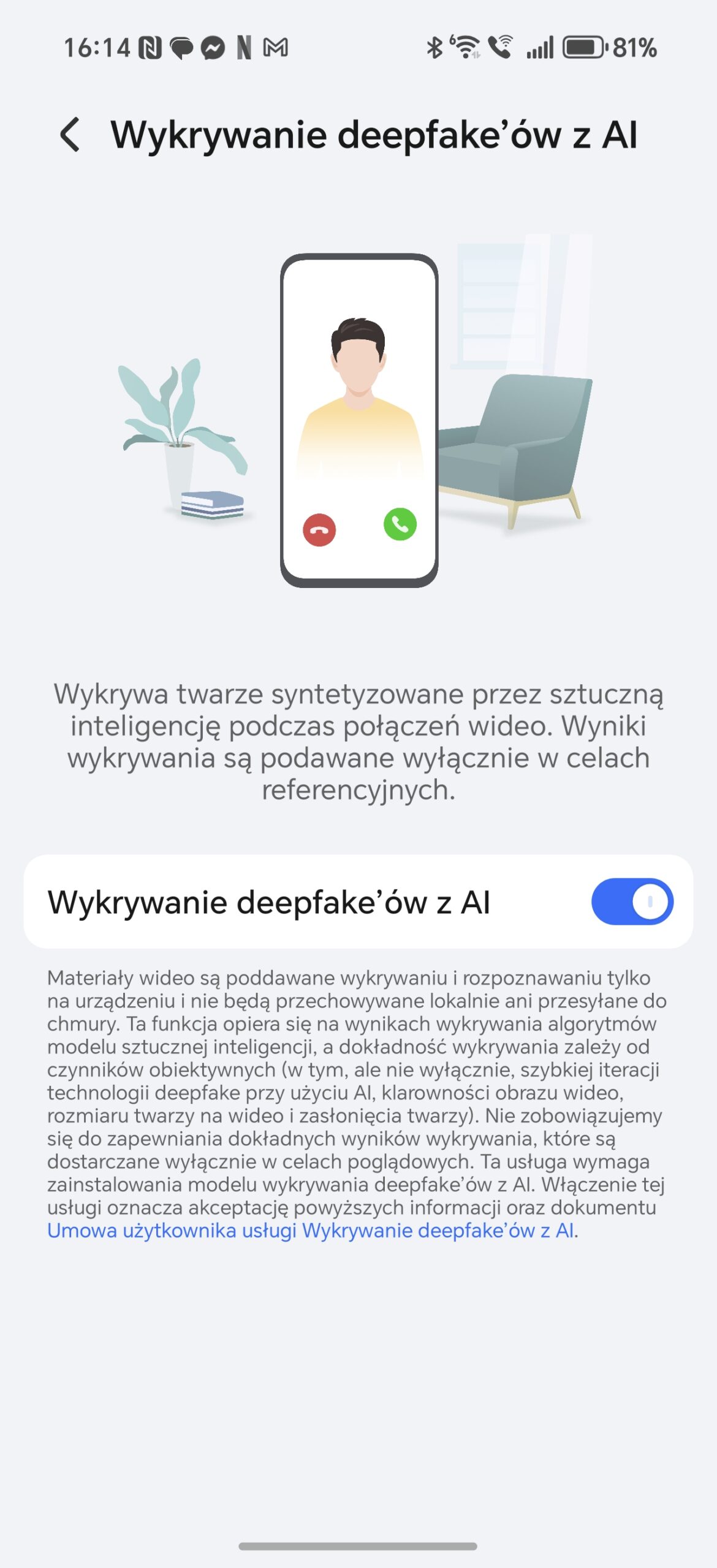 W systemie oczywiście nie zabrakło funkcji AI – są tłumaczenia połączeń na żywo (wciąż brak języka polskiego jednak), Gemini, zakreślanie, by wyszukać obraz, wyodrębnianie tekstu z obrazu. Interesująco wygląda Magiczny Portal, dzięki któremu można zakreślić knykciem obiekt na ekranie i system spróbuje rozpoznać, z czym ma do czynienia i zaproponuje opcje z tym związane – udostępnienie, uruchomienie odpowiedniej aplikacji i tak dalej. Po długich zapowiedziach pojawiło się w Honor 400 Pro także wykrywanie Deepfake.