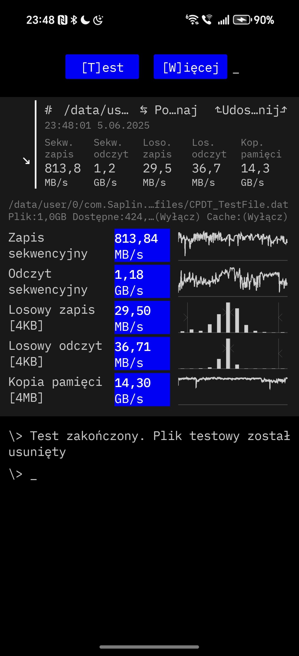 Snapdragon 8 Gen 3 nie jest już rekordzistą, jeśli chodzi o wydajność, ale z pewnością trzyma się wciąż w czołówce. Połączenie go z 12 GB RAM z pewnością nie spowodowało pojawienia się wąskiego gardła w systemie, a 512 GB flash w standardzie UFS 4 gwarantuje odpowiednią pracę pamięci masowej.