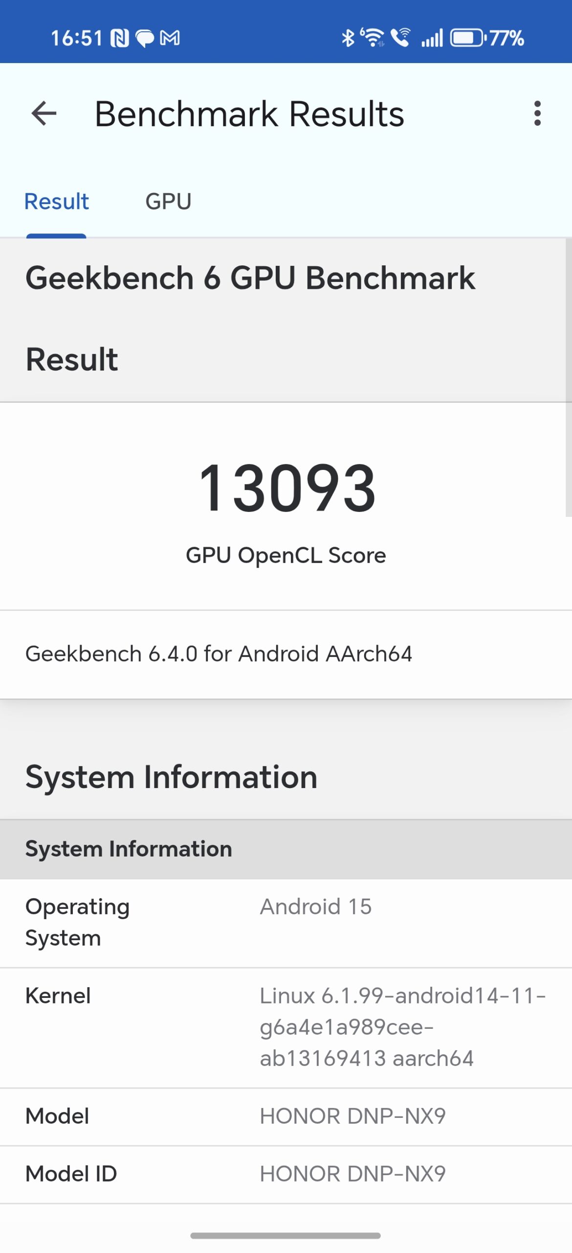 - Geekbench 6 GPU OpenCL: 13093 pkt