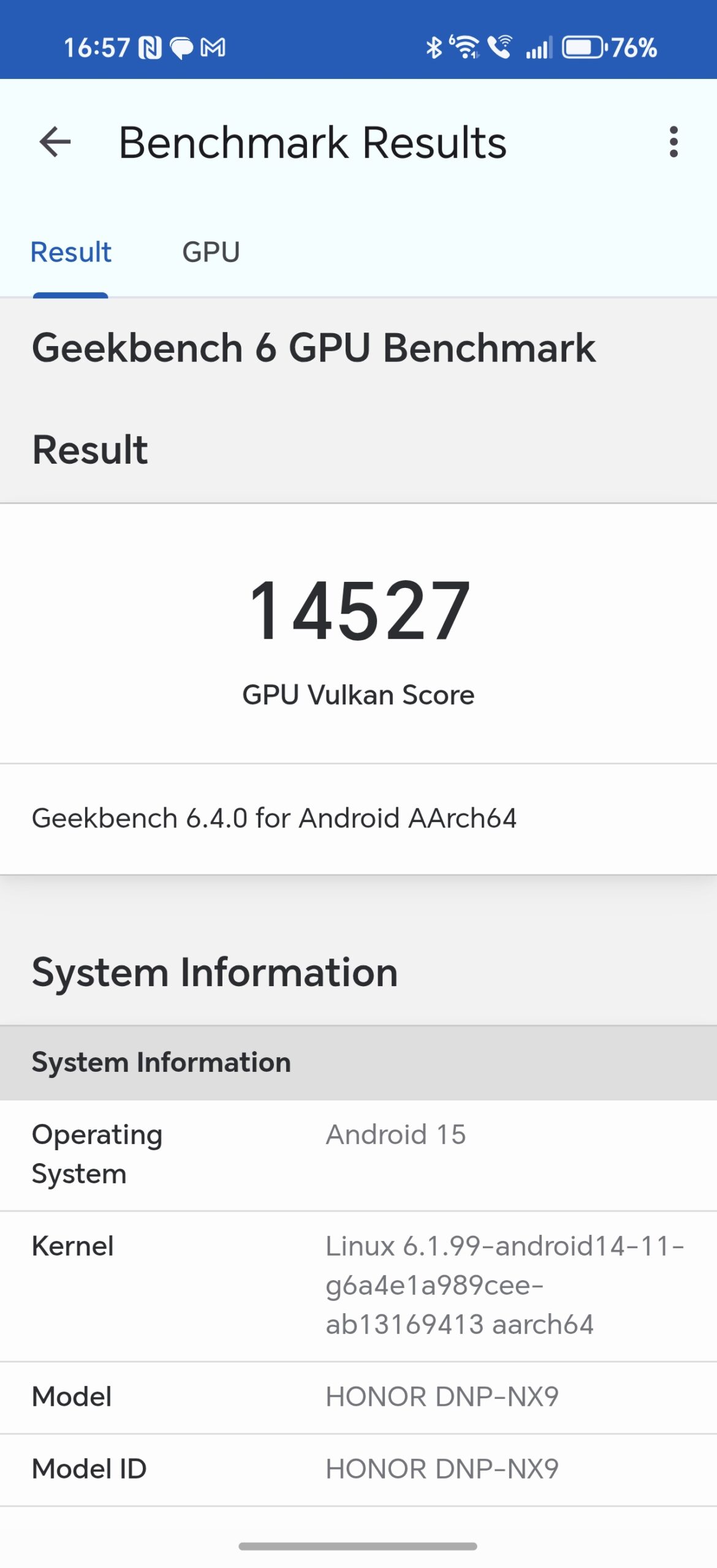- Geekbench 6 GPU Vulcan: 14527 pkt