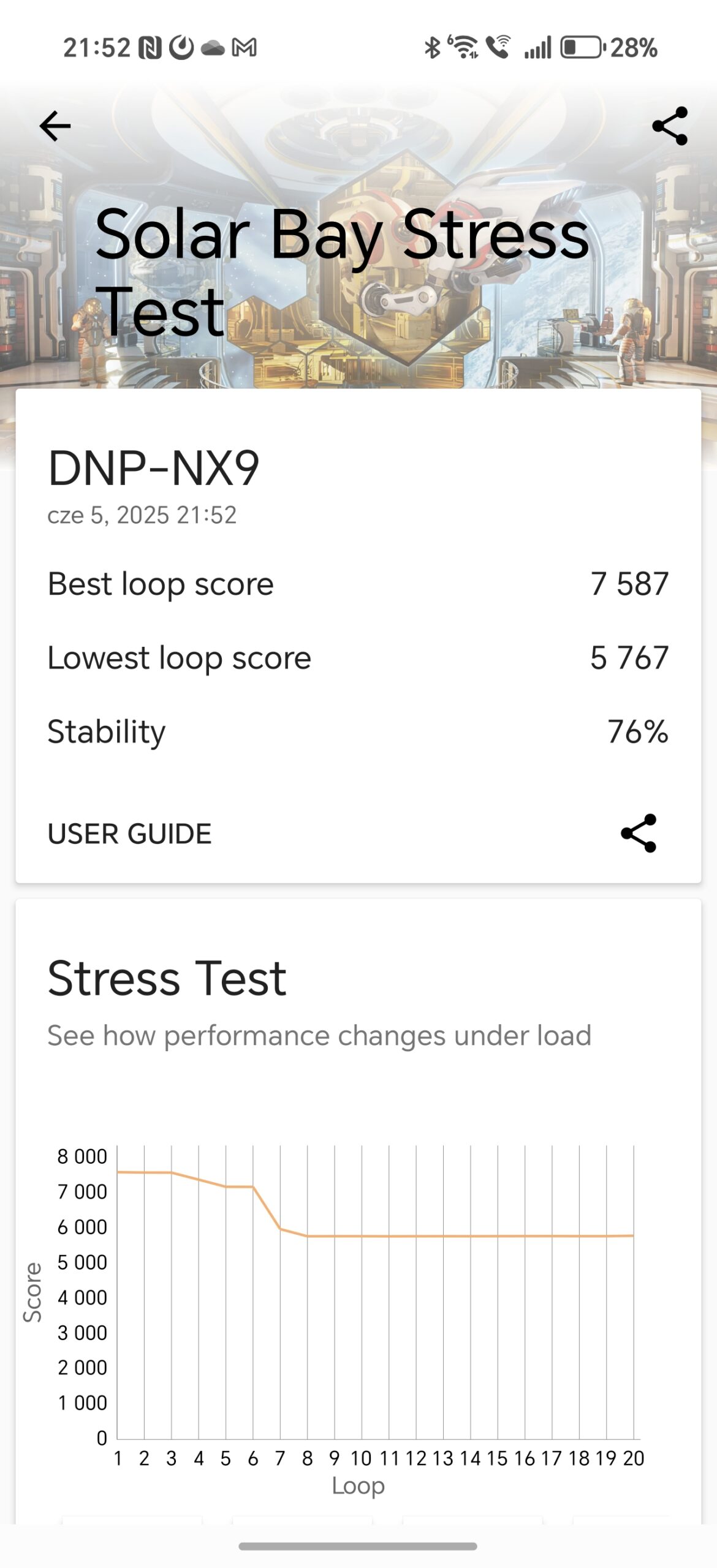 - Solar Bay Stress Test: 7587 / 5767 pkt, stabilność 76%