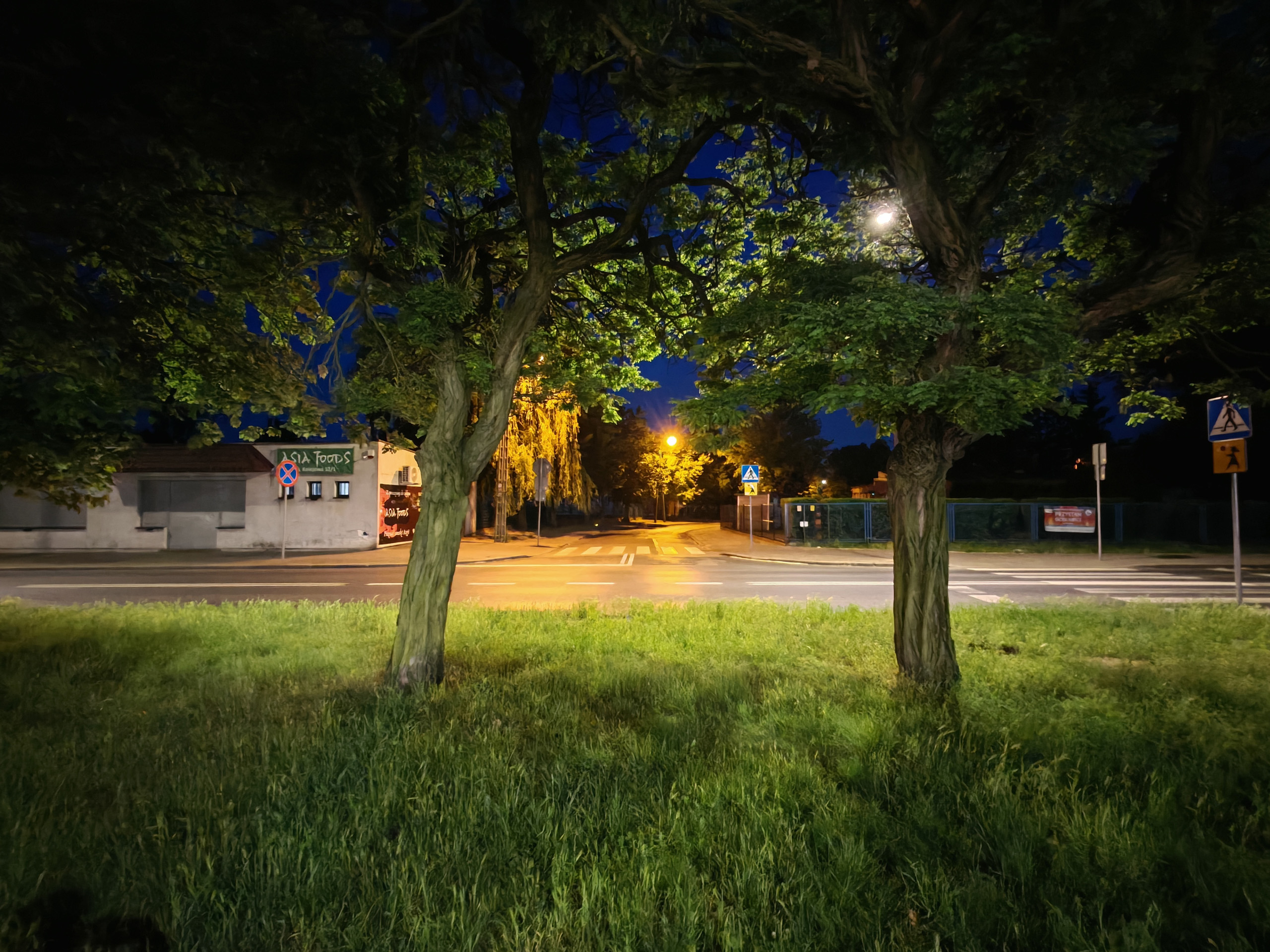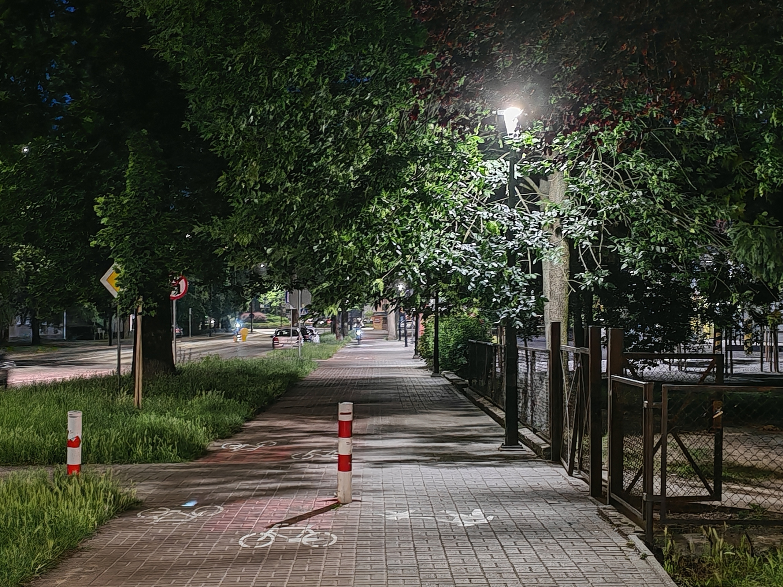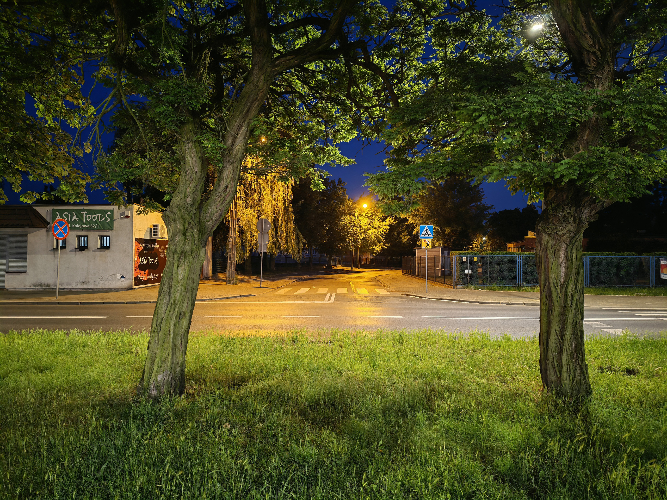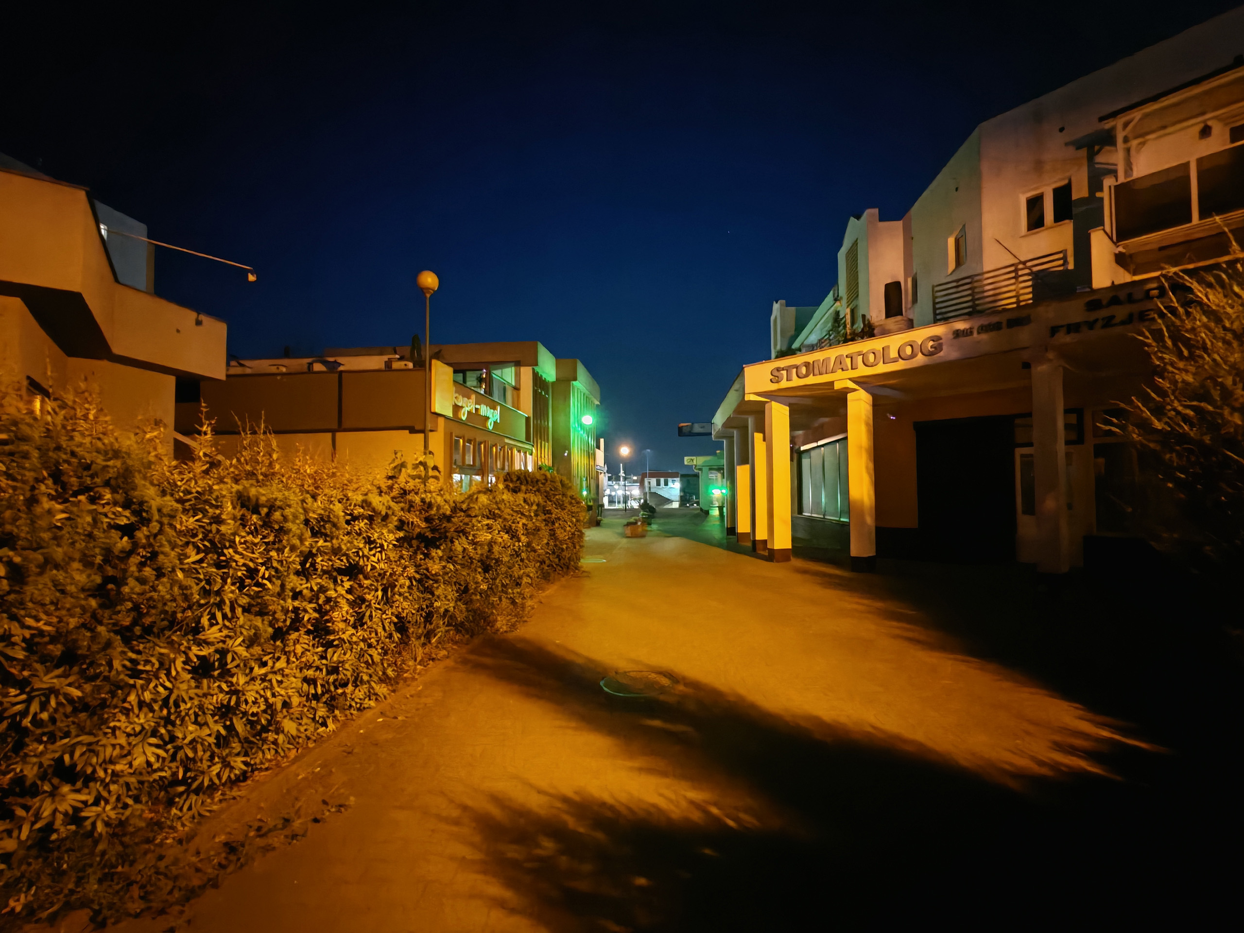 Noc bezlitośnie obnaża słabości aparatów Honora 400 Pro. Ultraszeroki kąt radzi sobie bardzo słabo, z trudem robi ostre kadry, a po przetworzeniu daje mydlany obraz w kadrze. Teleobiektyw także radzi sobie przeciętnie – w trybie ×3 jeszcze jest znośnie, jeśli jest sensowna ilość światła, natomiast cyfrowe zbliżenie ×6 jest w zasadzie nie do użytku.