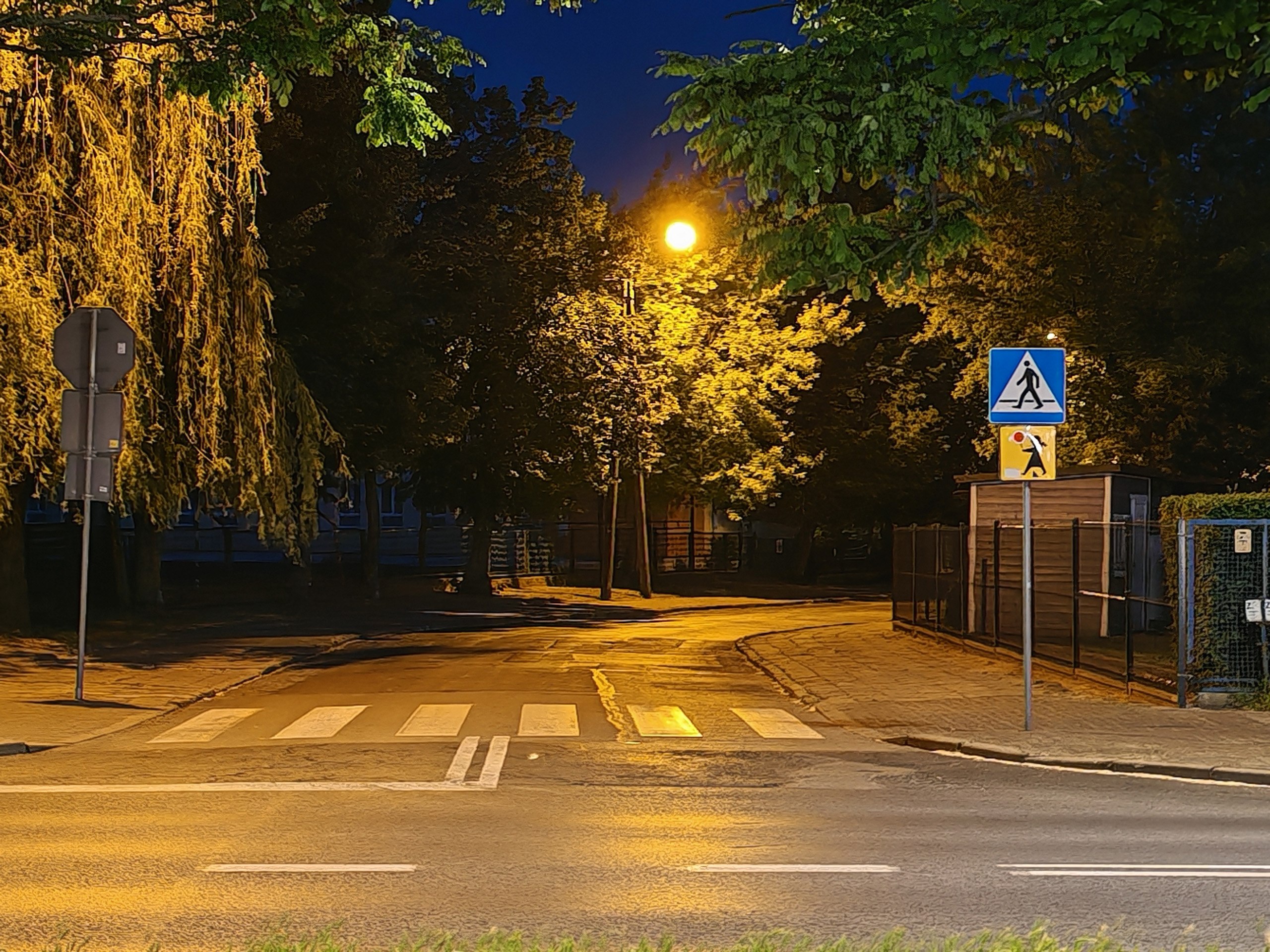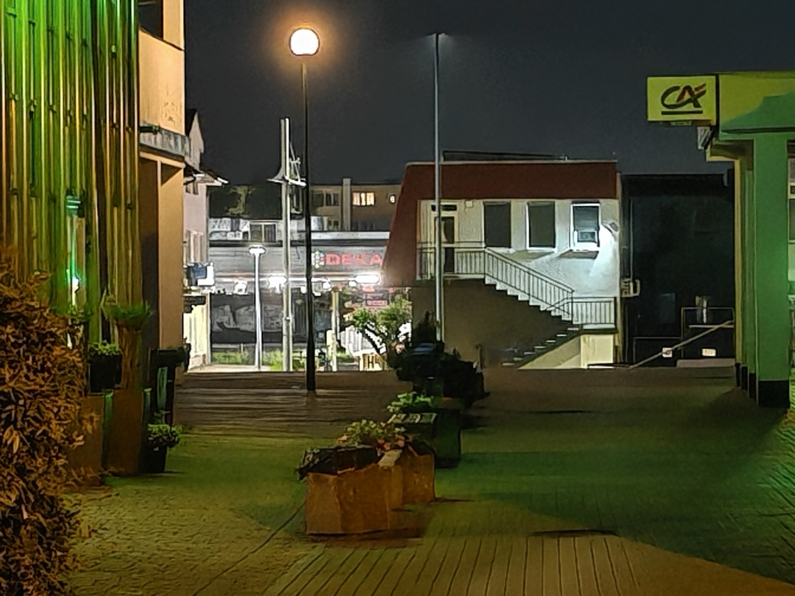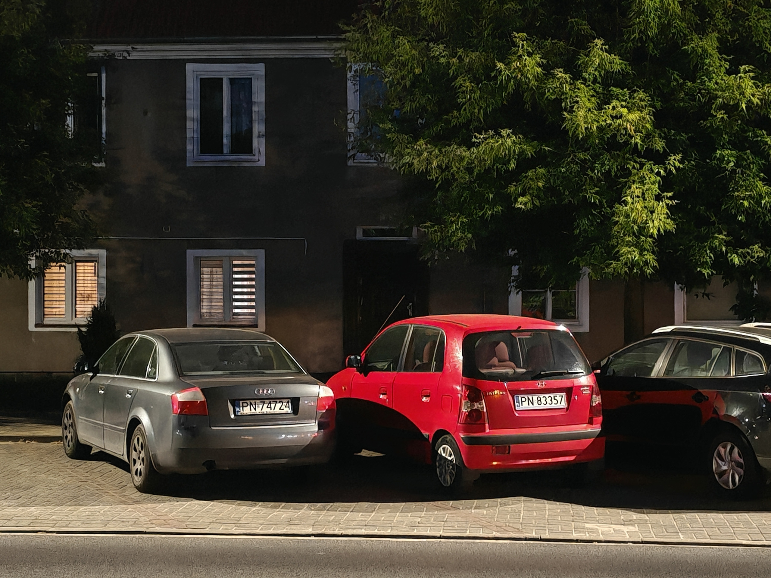 Noc bezlitośnie obnaża słabości aparatów Honora 400 Pro. Ultraszeroki kąt radzi sobie bardzo słabo, z trudem robi ostre kadry, a po przetworzeniu daje mydlany obraz w kadrze. Teleobiektyw także radzi sobie przeciętnie – w trybie ×3 jeszcze jest znośnie, jeśli jest sensowna ilość światła, natomiast cyfrowe zbliżenie ×6 jest w zasadzie nie do użytku.