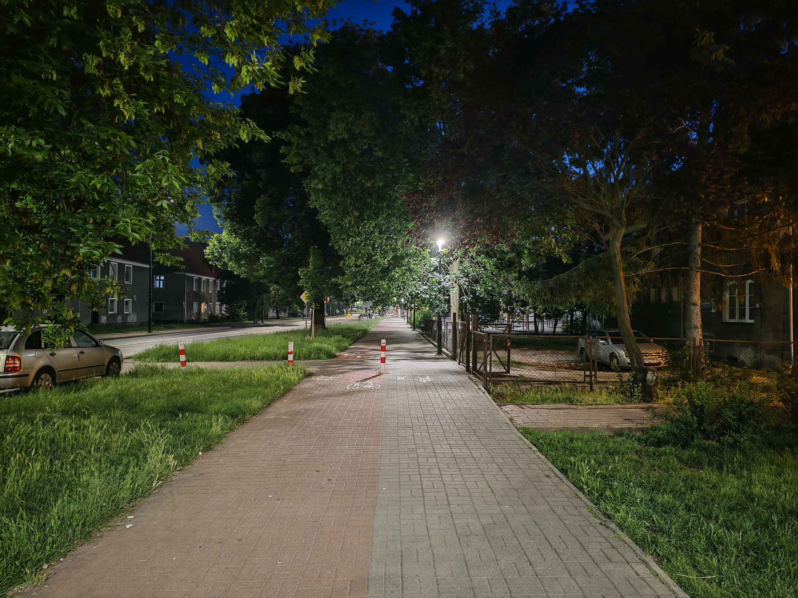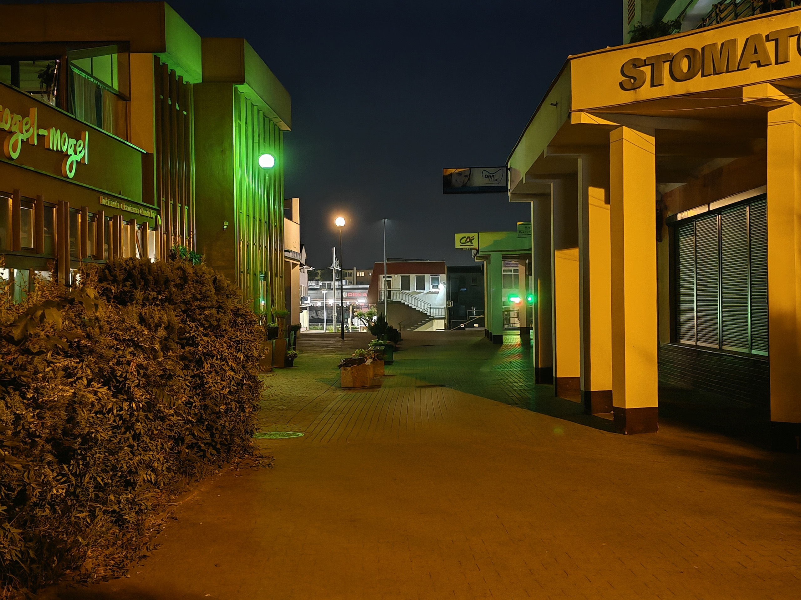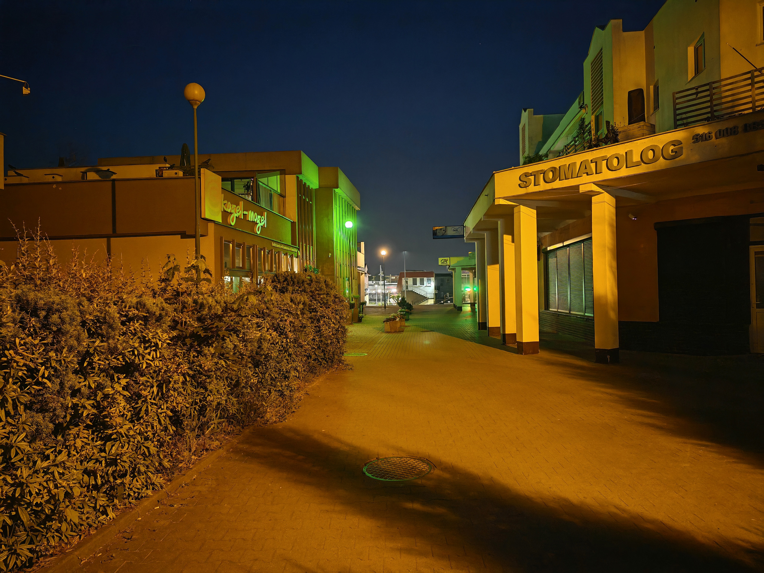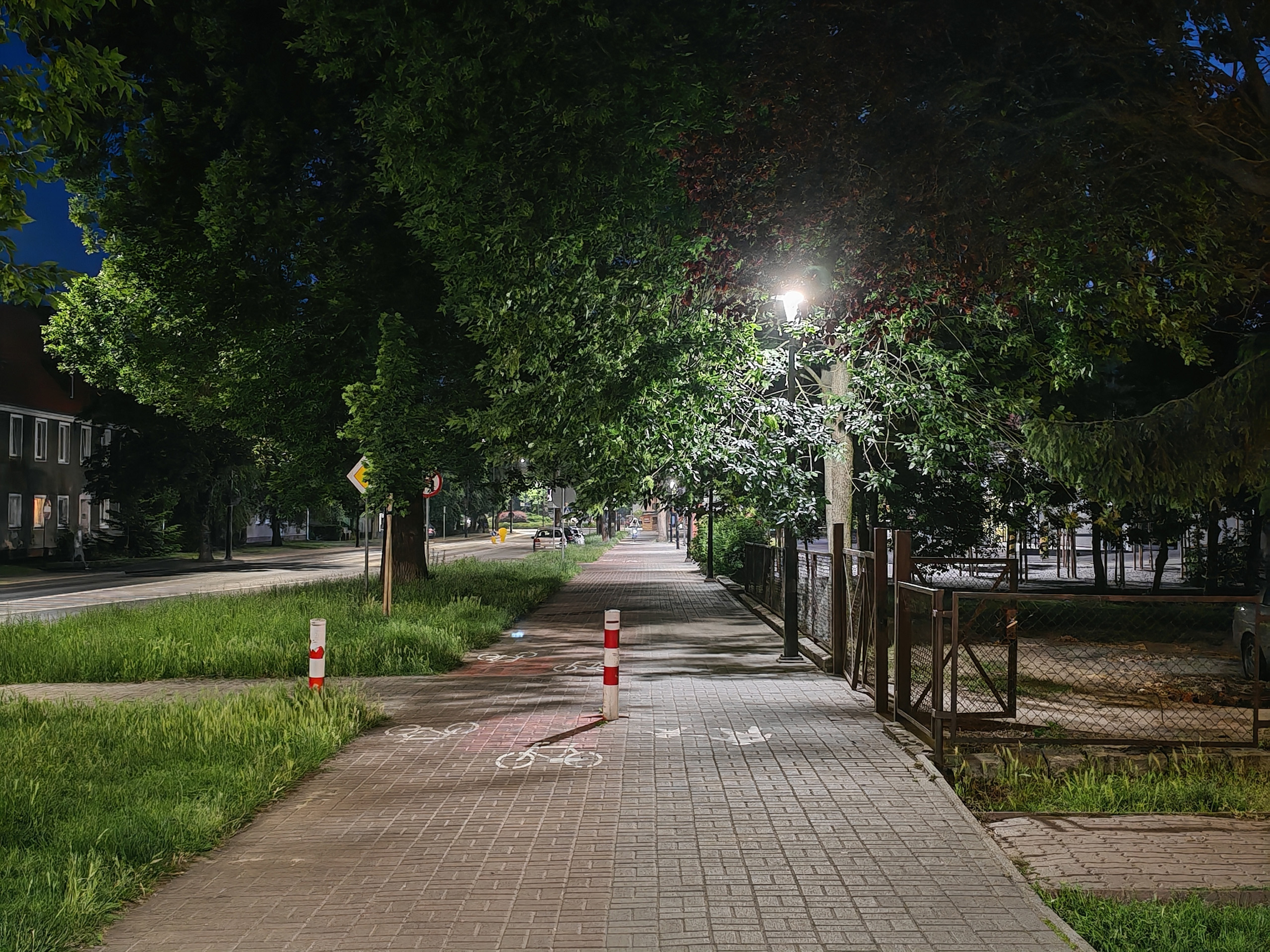 Noc bezlitośnie obnaża słabości aparatów Honora 400 Pro. Ultraszeroki kąt radzi sobie bardzo słabo, z trudem robi ostre kadry, a po przetworzeniu daje mydlany obraz w kadrze. Teleobiektyw także radzi sobie przeciętnie – w trybie ×3 jeszcze jest znośnie, jeśli jest sensowna ilość światła, natomiast cyfrowe zbliżenie ×6 jest w zasadzie nie do użytku.