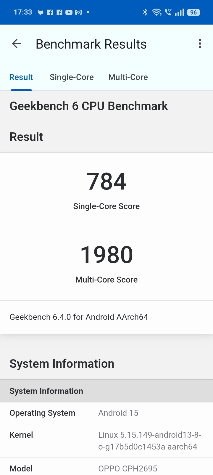 - Geekbench 6 Single Core: 784 pkt