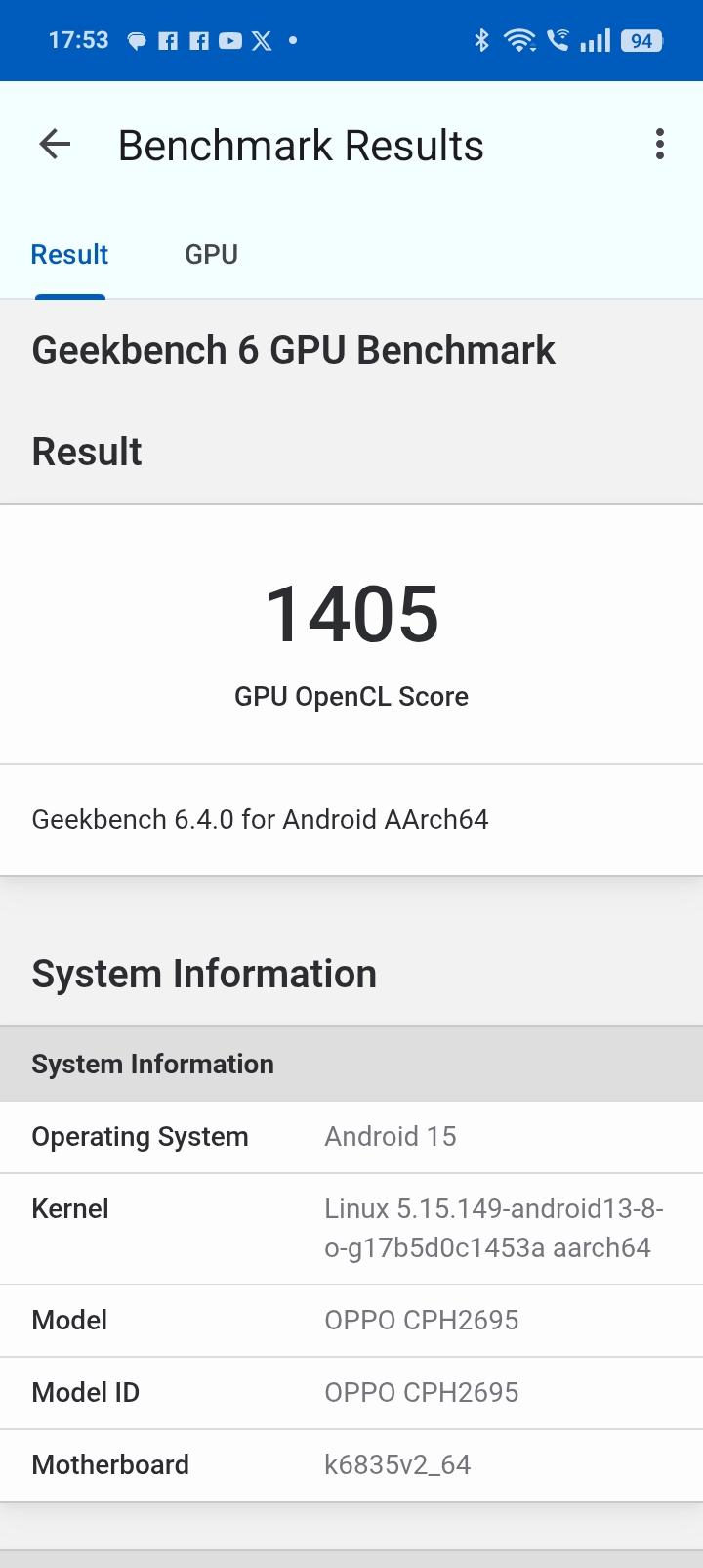 - Geekbench 6 GPU OpenCL: 1405 pkt
